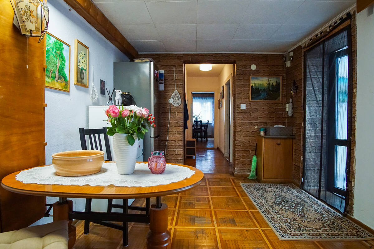 Mit einer Wohnfläche von rund 91 m² und einer zusätzlichen Nutzfläche von ca. 13 m² verteilt sich die Wohn- und Nutzfläche auf 1,5 Etagen im Haus und Anbau. Dieses Haus bietet insgesamt fünf Zimmer, eine Diele, die Küche mit Durchreiche und eine Veranda. Über eine Holztreppe, oder den vorhandenen Treppenlift gelangt man in das Obergeschoss des Hauses indem sich ein Schlafzimmer und ein weiteres kleines Zimmer sowie der Dachboden befinden. Das Obergeschoß im Anbau verfügt über 2 weitere Zimmer und eine Toilette mit Waschbecken.