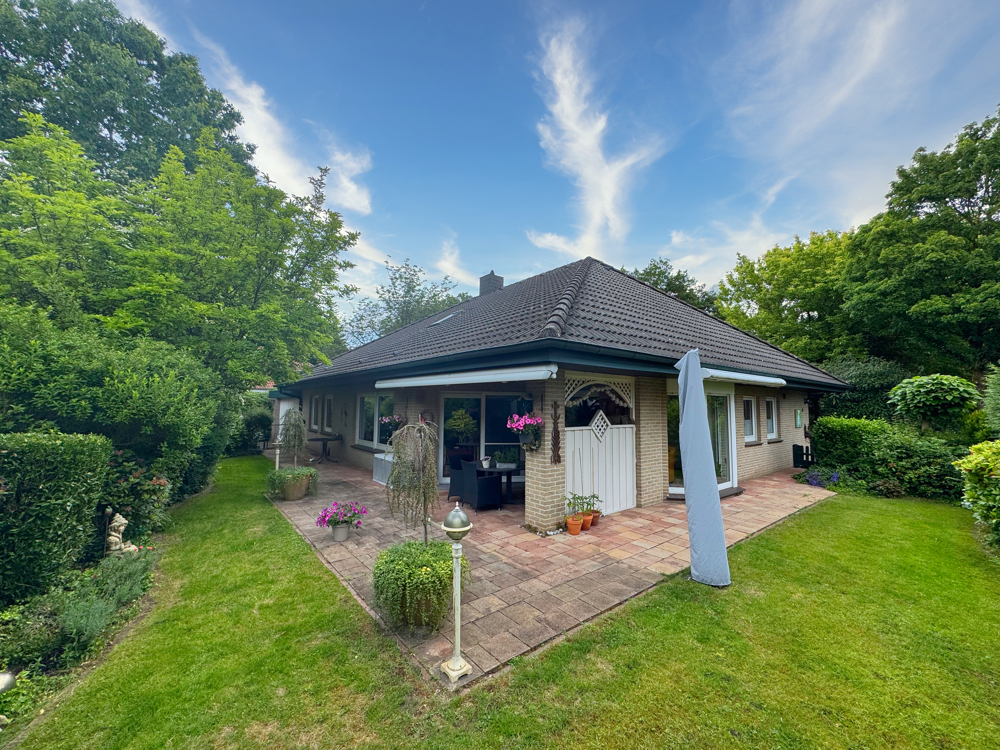 In einer der gefragtesten Wohnlagen Nordhorns befindet sich dieser gepflegte, gut geschnittene Bungalow. Die ruhige, grüne Umgebung schafft ein ideales Wohnumfeld für alle, die Komfort, Erholung und zugleich eine gute Infrastruktur schätzen. Das Eckgrundstück umfasst 682 m².