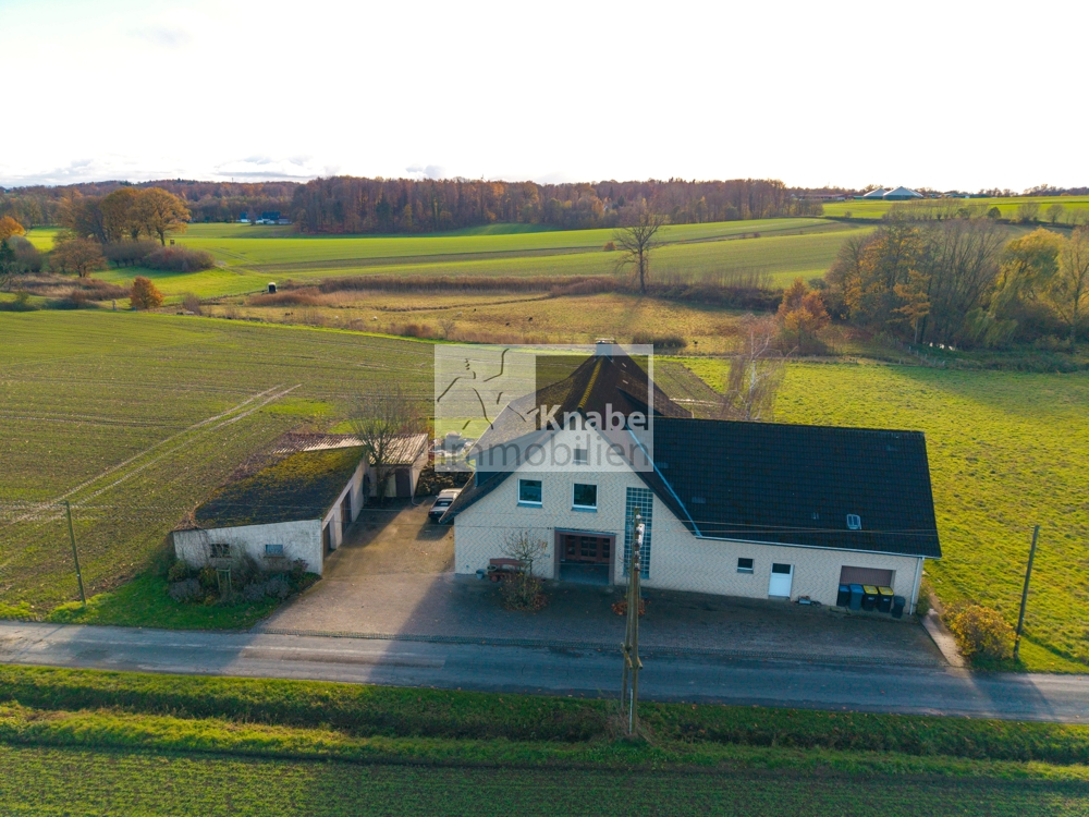 Das Anwesen bietet neben den Wohnräumen auch eine ehemalige Stallung, die als Hobbywerkstatt mit der Möglichkeit für eine Hebebühne, als Pferdestall oder Ausbaureserve für weitere Wohn- oder Gewerbeeinheiten genutzt werden kann. Eine Garage und weitere Kfz-Stellplätze auf dem Hof runden das Angebot ab.