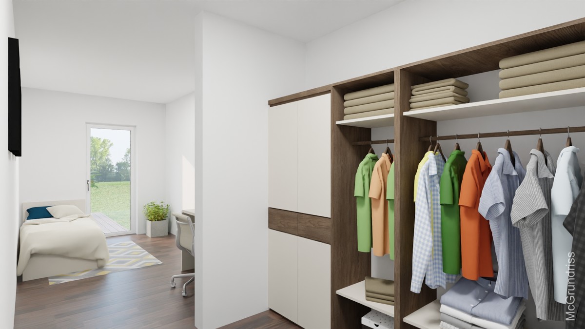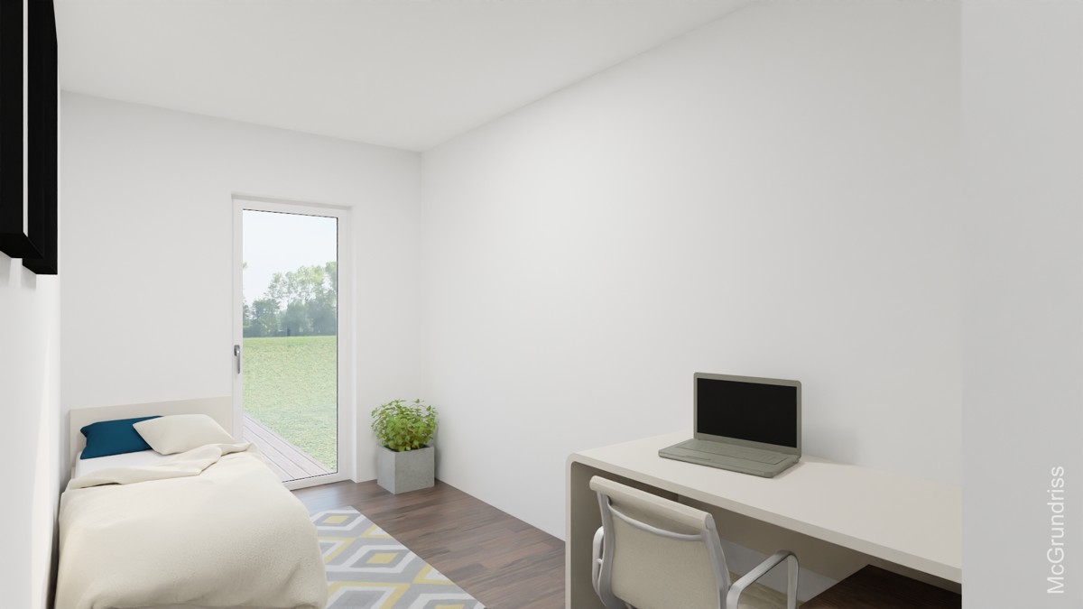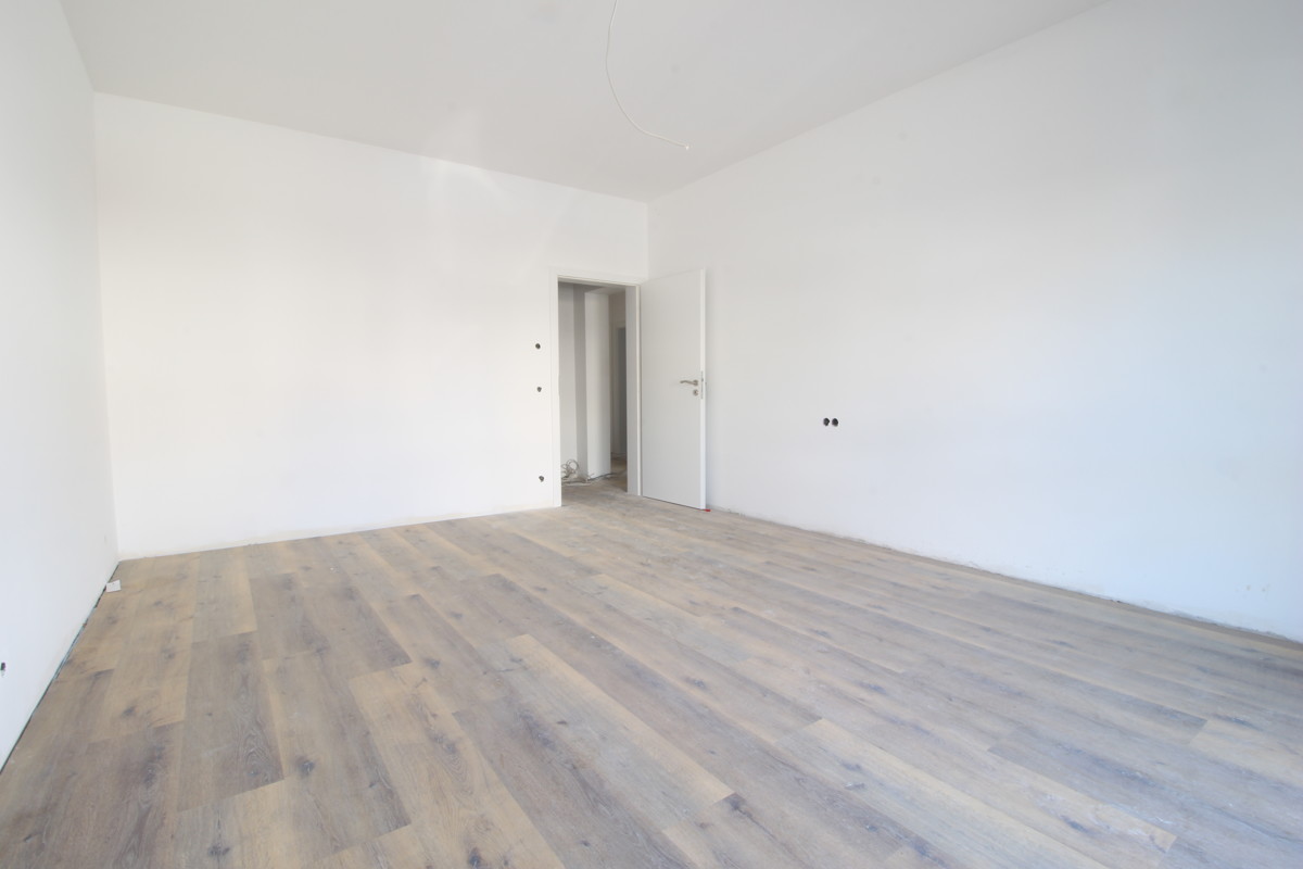 Der Fußboden wird mit Linoleum ausgestattet und die Wände werden weiß gestrichen.