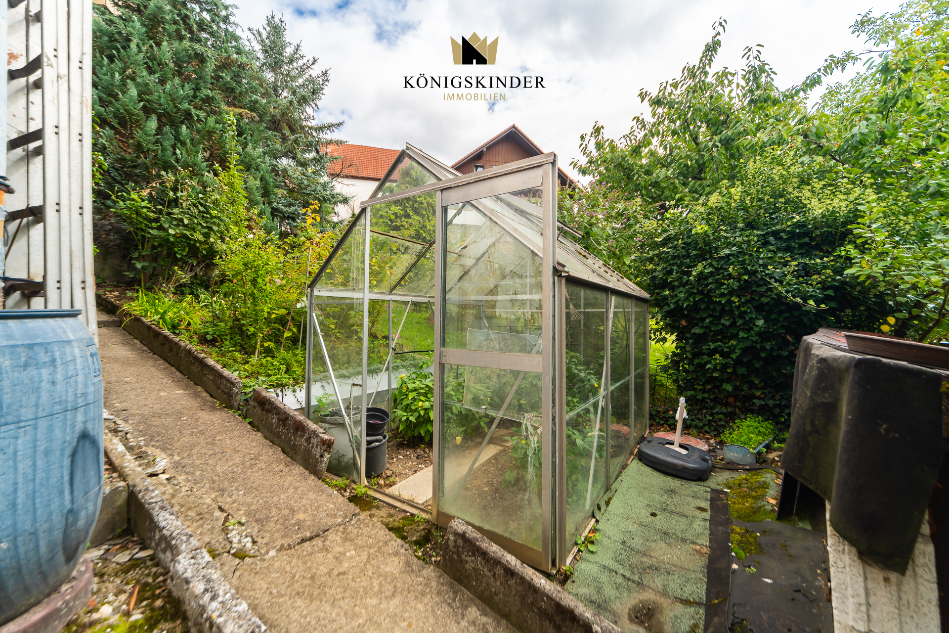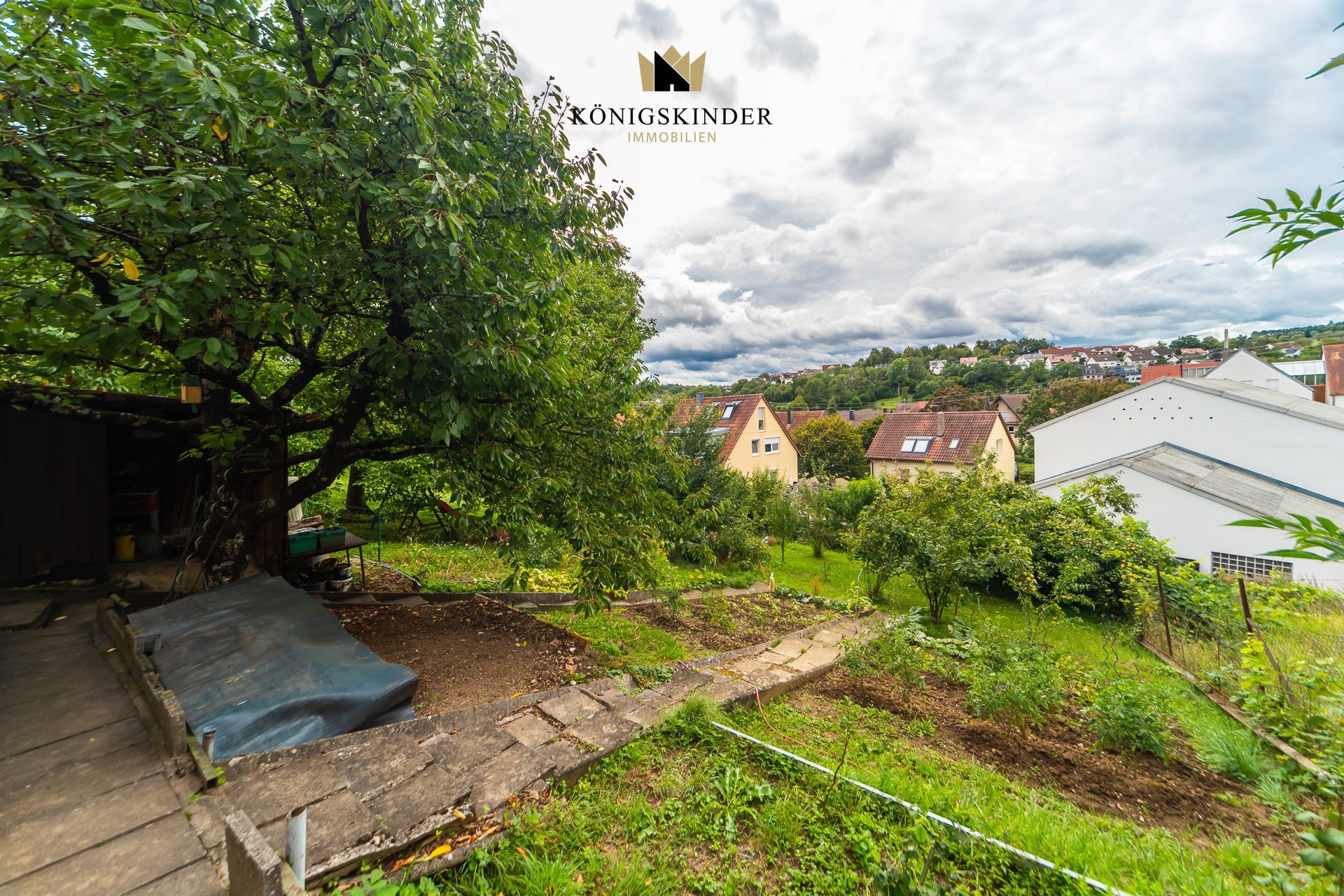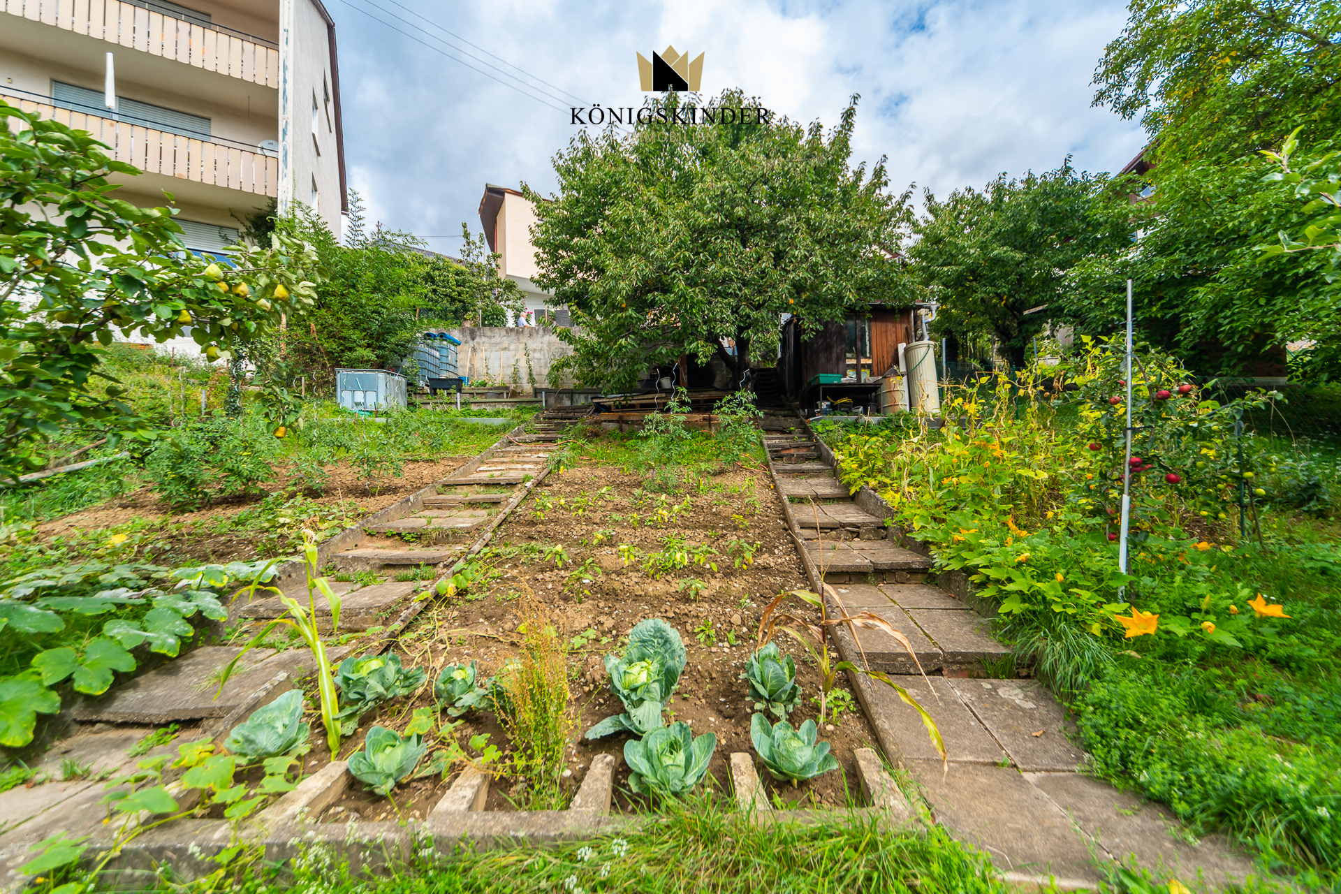 - Großes Grundstück mit terrassiertem Garten, Beeten und Obstbaumbestand