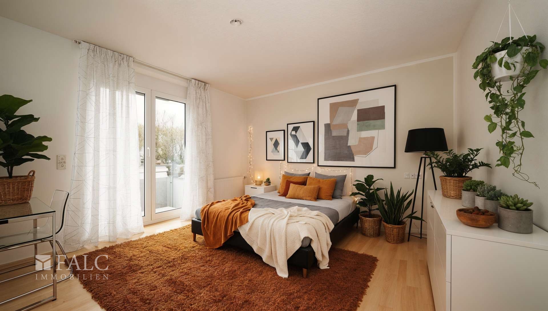 Das große, helle Schlafzimmer wartet auf Ihren individuellen Einrichtungsstil, verbringen Sie erholsame Stunden in Ihrer behaglichen Traumoase und starten Sie ausgeruht in den Tag. Von hieraus gelangen Sie auf den großen Balkon zur Südostseite, perfekt für den Morgenkaffee bei Sonnenaufgang.