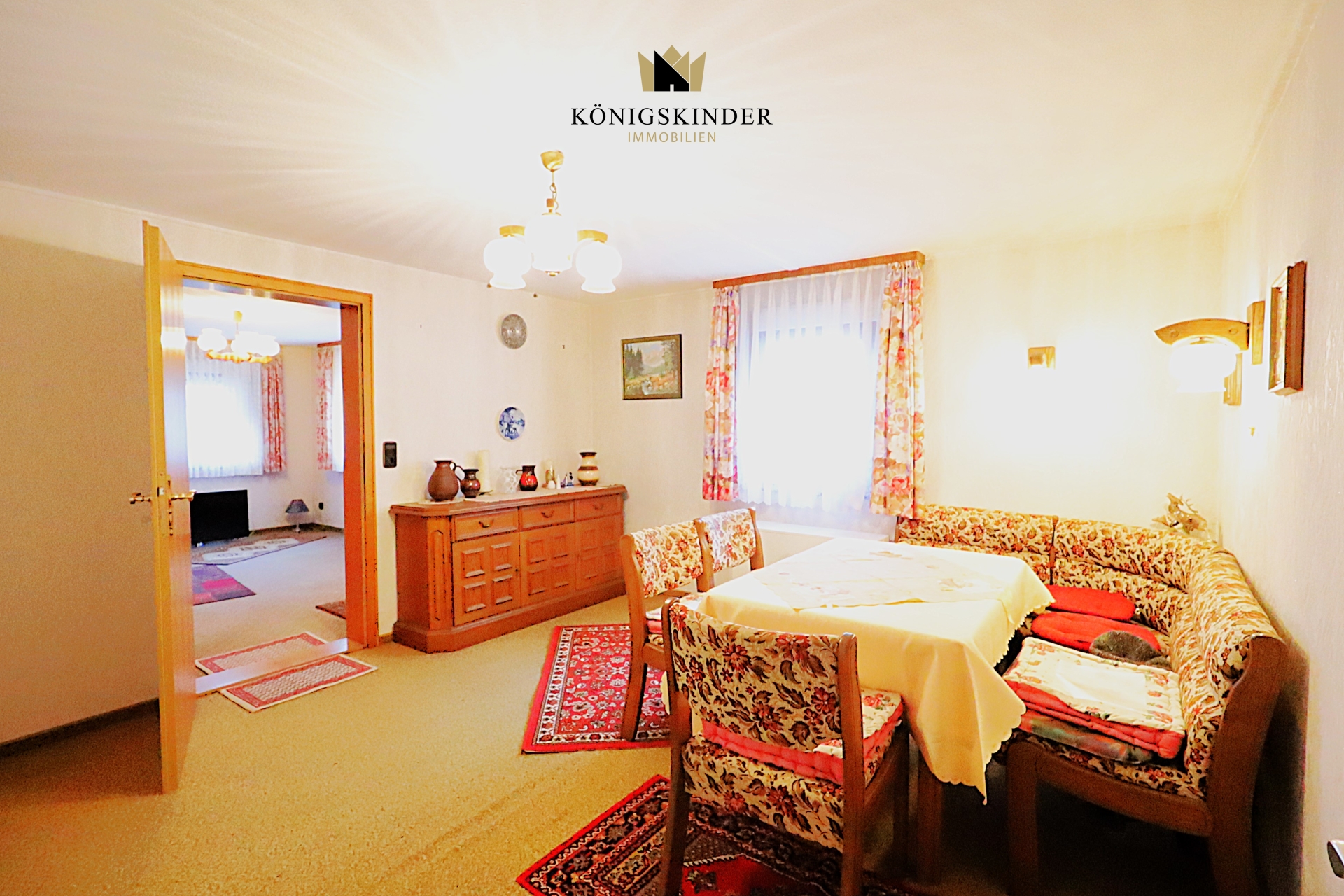 Treten Sie ein......in die gemütliche WohnküchePlatz für den SonntagsbesuchDie gute Stube - mollig warm......durch den Holzofen - kann bleiben...Nur hier wird schmutzige Wäsche gewaschen...direkt dahinter: das Bad mit antikem Badeofen...hier geht's hoch.....zu den Zimmern...für Kindern......und Eltern......und zur Dachterrasse......mit Blick ins Grüne......und zur eigenen Wiese.Dem Haus mal auf's Dach steigen......handwerklich solide Arbeit...der ehemalige Stall......und die Scheune...macht auch von hinten eine gute FigurSUV oder Dachgepäckträger: passt locker rein...hier macht es Spaß zu wohnenHaus und Garage auf einen BlickMacht hübsch was her...