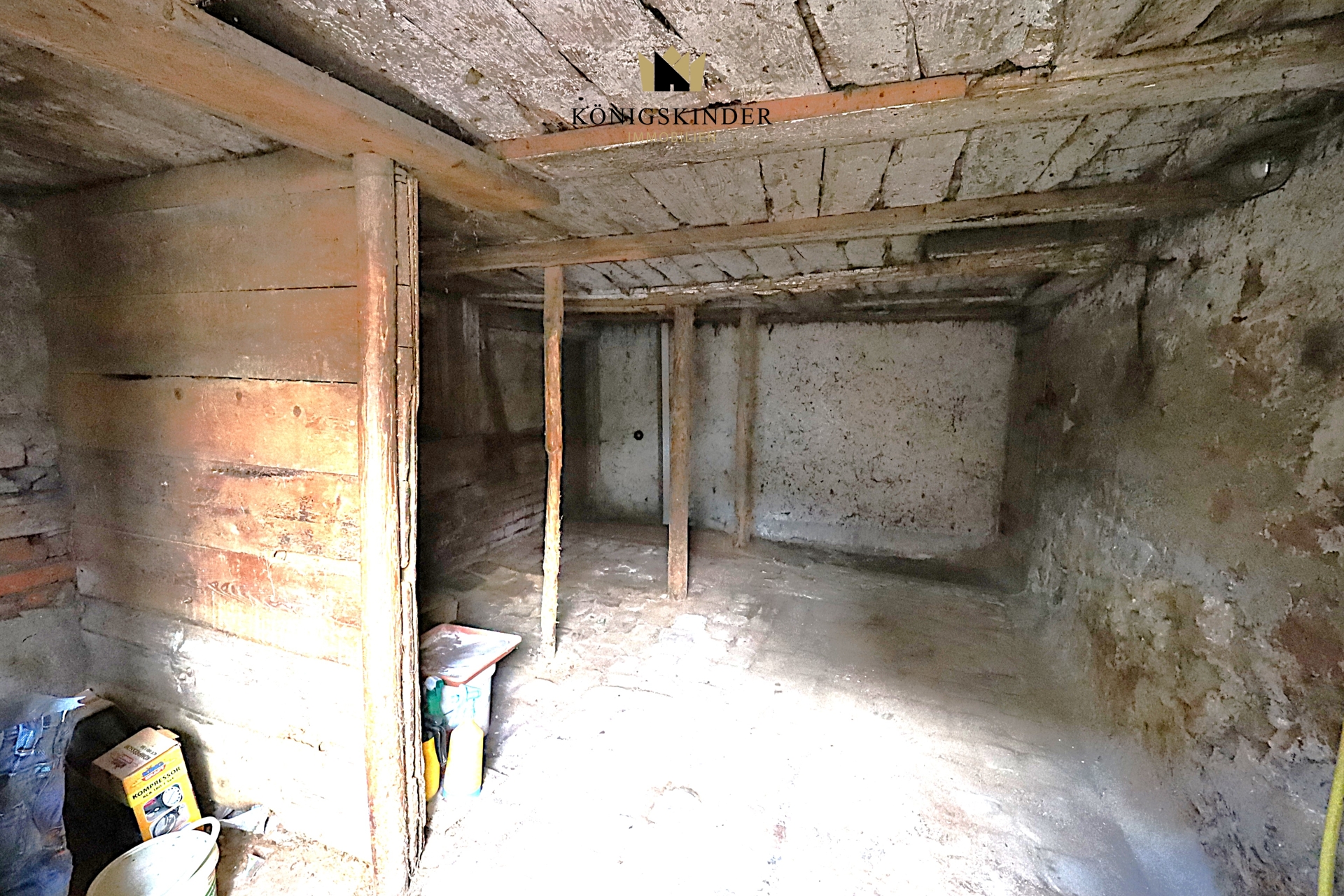 Das Kleinbauernhaus in der üblichen charakteristischen Bauweise mit Wohnteil und Wirtschaftsteil unter einem Dach ist komplett massiv und solide unterkellert im Jahr 1877 erbaut worden. 75% des Kellers sind im Hang und nicht nutzbar, sondern dienen als Fundament und sichern somit den Fachwerkaufbau. Die Ausfachungen sind gemischt aus Stroh-/Weidengeflecht mit Lehm und Steinen - eben in bester handwerklicher Tradition.