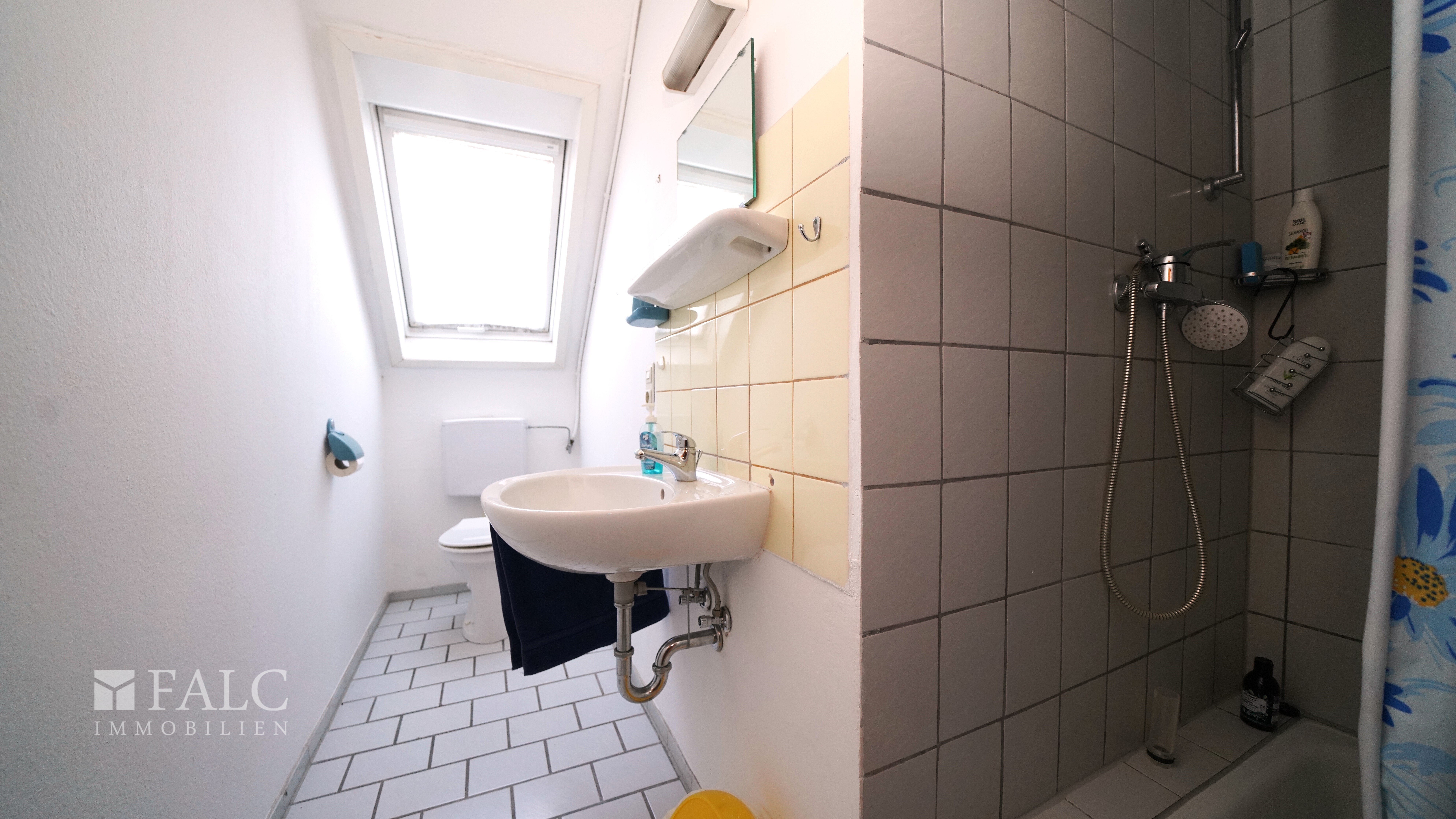 Im Dachgeschoss befinden sich zwei weitere Schlafzimmer, davon eines mit eigenem Badezimmer. Ein zweites Duschbad ist über den Flur zugänglich. Beide Bäder verfügen über Dusche, WC und Waschbecken. Ein Schlafzimmer bietet Zugang zu einem ca. 4 m² großen Balkon. In drei Räumen wurden maßgefertigte Einbauschränke in die Dachschrägen integriert. Die vorhandenen Dachfenster sind mit Lüftungsklappen und teilweise mit integrierten Rollos ausgestattet.