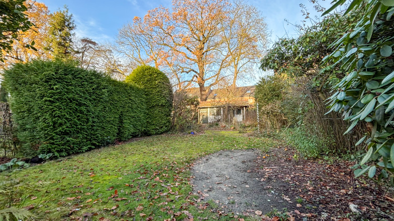 Beim Betreten des Hauses gelangt man in eine Diele, von der eine Treppe ins Obergeschoss führt. Im Erdgeschoss befindet sich ein großzügiger Wohn- und Essbereich, der durch seine Offenheit ein angenehmes Wohngefühl vermittelt. Die separate Küche bietet direkten Zugang zum später errichteten Anbau. Dieser erweitert das Raumangebot um einen weiteren Flur sowie zwei Bäder – eines davon mit Badewanne. Der Freisitz und der Garten mit Gartenhaus schaffen einen einladenden Rückzugsort im Freien und laden zum Verweilen ein.