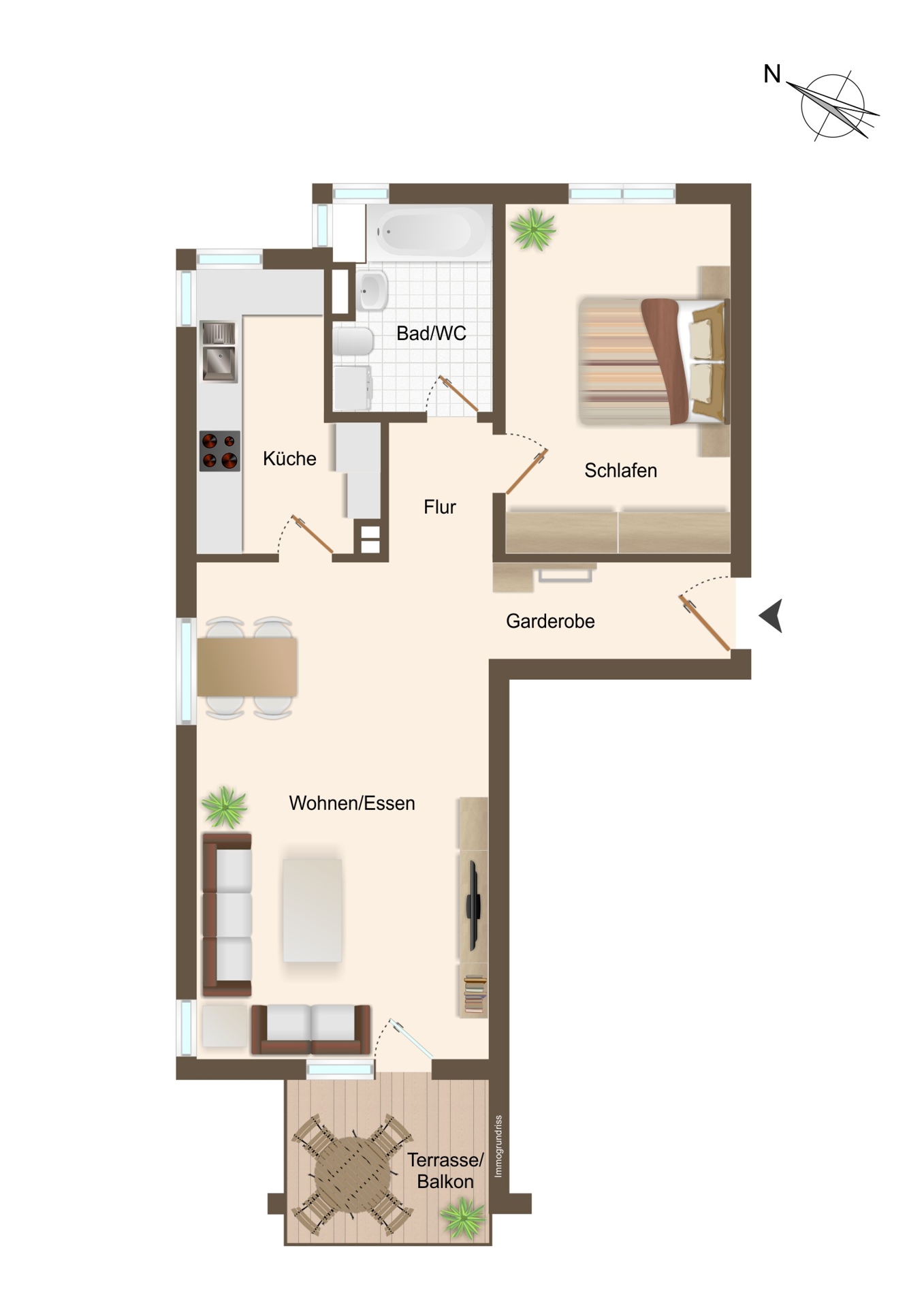 * Gemütliche 2 Zimmer-EG-Wohnung * Weitläufiger Wohn-Essbereich mit mehr als 25qm * Sonnenterrasse und Gartenanteil als Sondernutzungsrecht * Hochwertige EBK in stylischem Rot gehalten * Sehr schöne Hochglanz-Bodenfliesen in trendigem Großformat * Keller * 2026 werden die Fenster erneuert * Hausmeisterservice * Tiefgaragenplatz * Außenstellplatz * Aktuelle Mieteinnahmen: 720,-€ pro Monat * Hausgeld: 285,-€ pro Monat * Rücklagen: 81€ pro Monat * Rücklagen TG: 10€ pro Monat * Rücklagenstand 12/2024: 101.786,58€