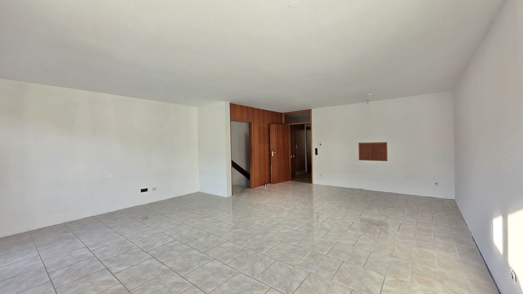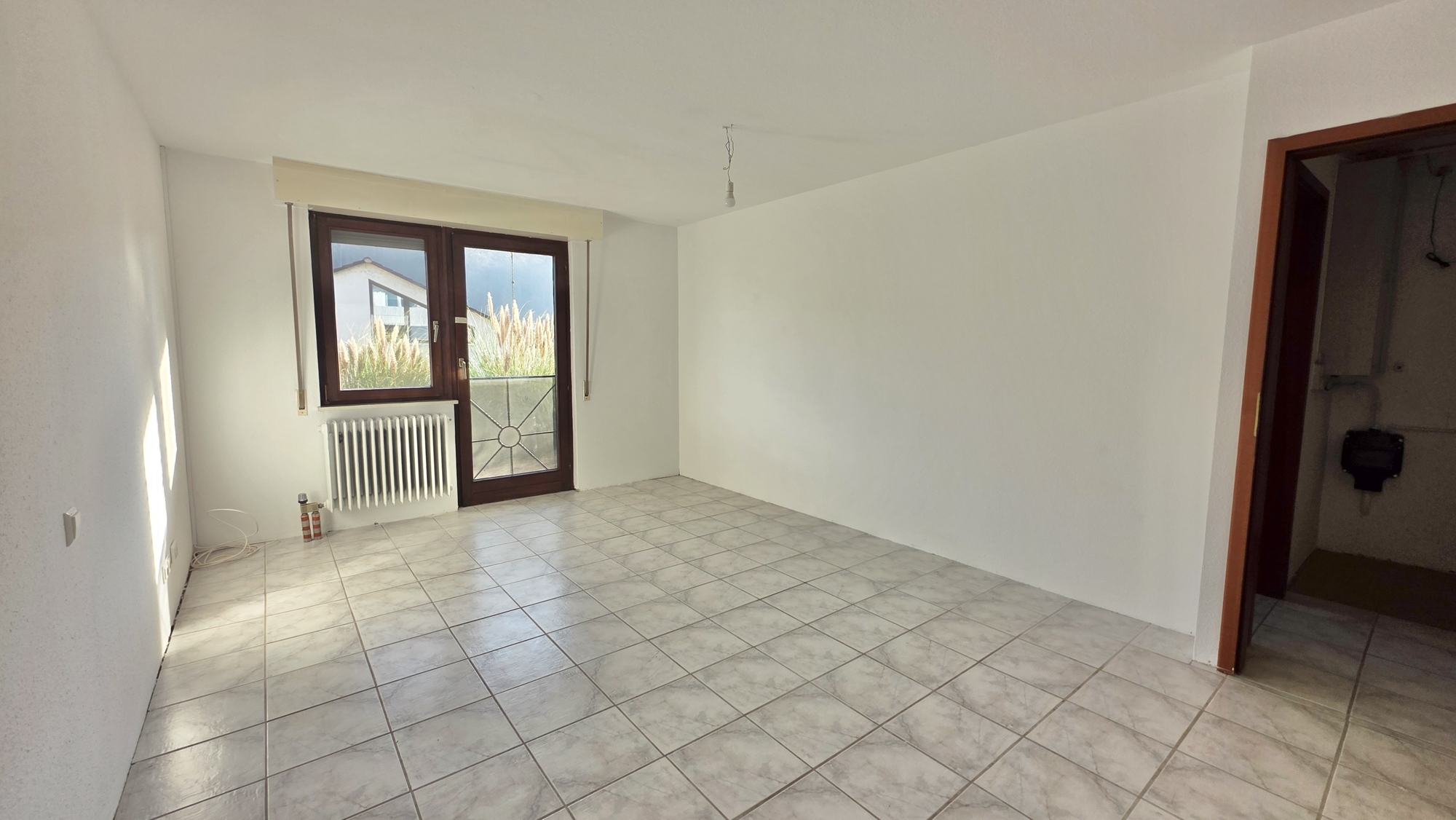 Das Haus besticht durch eine gute Raumaufteilung: Ein großes Wohn-/Esszimmer mit hellen Fliesen und Zugang zum Balkon mit toller Aussicht sowie eine Küche mit EBK und ein Gäste-WC. Im UG befinden sich drei Schlafzimmer. Zwei Räumen haben Zugang zur großen Terrasse und dem Garten. Ebenfalls im UG finden Sie das Badezimmer und den Haustechnikraum mit der Gaszentralheizung BJ 2000.