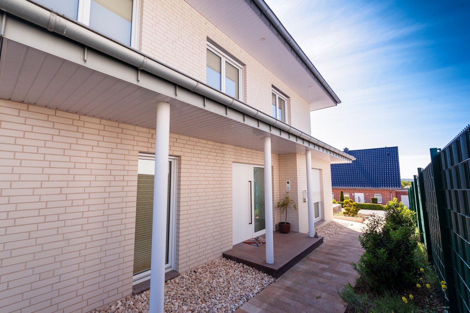 Hier präsentieren wir Ihnen eine gepflegte Villa, die modernes Wohnambiente mit einer hochwertigen Ausstattung in einem ansprechenden Gesamtbild vereint. Das im Jahr 2013 fertiggestellte Einfamilienhaus überzeugt durch seine großzügige Raumaufteilung, lichtdurchflutete Architektur und zukunftsorientierte Bauweise. Das Haus ist als KFW 70-Effizienzhaus gebaut. Die Wohnfläche von ca. 187 m² verteilt sich auf insgesamt vier gut geschnittene Zimmer, darunter drei geräumige Schlafzimmer. Mit zwei voll ausgestatteten Bädern sowie einem zusätzlichen Gäste-WC ist auch für Familien oder Gäste maximaler Komfort gewährleistet. Durch den gelungenen Grundriss eignet sich die Immobilie optimal für unterschiedliche Lebensentwürfe, sei es für Paare, Familien oder Menschen mit dem Bedarf an zusätzlichem Raum für Home-Office oder Hobby. Das Grundstück umfasst eine Fläche von ca. 692 m² und bietet vielfältige Nutzungsmöglichkeiten. Der Außenbereich wird durch zwei großzügige Außenflächen ergänzt: eine südwestlich ausgerichtete Terrasse sowie ein ebenso ausgerichteter Balkon, die beide einen idealen Ort für entspannte Stunden im Freien schaffen. Die moderne Bauweise zeigt sich in der offenen und lichtdurchfluteten Architektur des Hauses. Große bodentiefe Fenster mit 3-fach Verglasung ermöglichen einen optimalen Lichteinfall und unterstreichen das geradlinige Raumkonzept. Elegante, großflächige Glastüren lassen die Grenzen zwischen Innen- und Außenraum geschickt verschmelzen. Die Energieeffizienz wird durch eine wärmegedämmte Fassade und eine Solaranlage für die Warmwasserbereitung zusätzlich optimiert. Damit verbindet die Immobilie ansprechende Wohnqualität mit nachhaltiger Technologie. Im Zentrum des Wohnbereichs befindet sich der stilvolle, verglaste Kamin, der nicht nur für eine angenehme Atmosphäre, sondern auch für eine effiziente Zusatzwärmequelle als Ergänzung zur Fußbodenheizung sorgt. Die hochwertige Einbauküche ist mit sämtlichen modernen Geräten ausgestattet und bildet den Mittelpunkt alltäglicher Aktivitäten. Wenn Sie mehr erfahren möchten, nehmen Sie Kontakt mit uns auf und fordern das Expose zur Immobilie an.