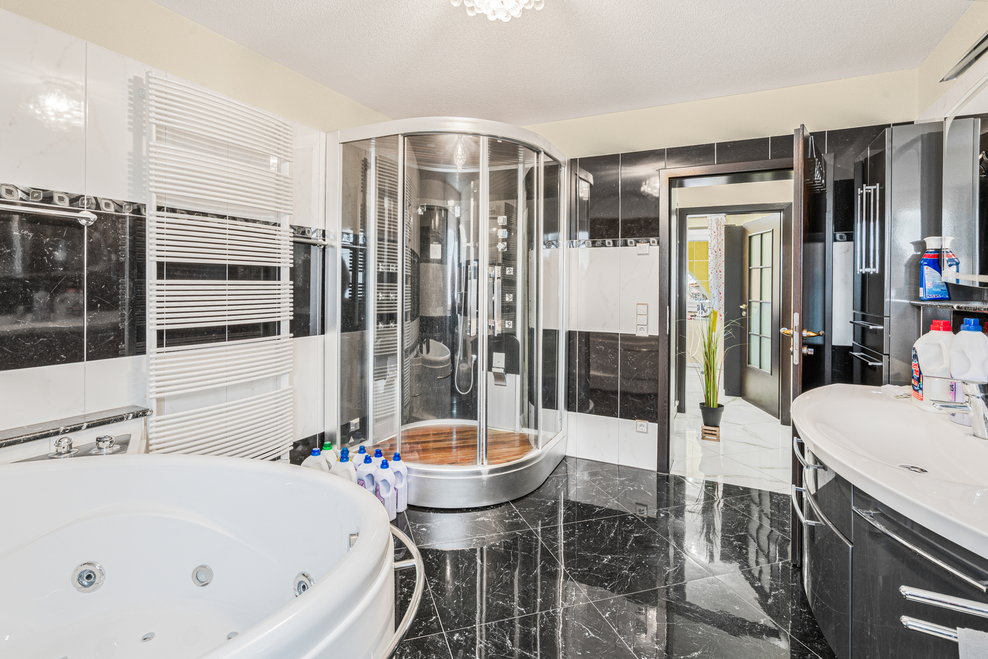 Willkommen in dieser beeindruckenden Villa in Murg, die durch modernen Komfort und großzügige Raumaufteilung besticht. Diese charmante Immobilie, erbaut im Jahr 2012, überzeugt mit einer umfangreichen Wohnfläche von 395 m² und einer großzügigen Grundstücksgröße von 942 m².