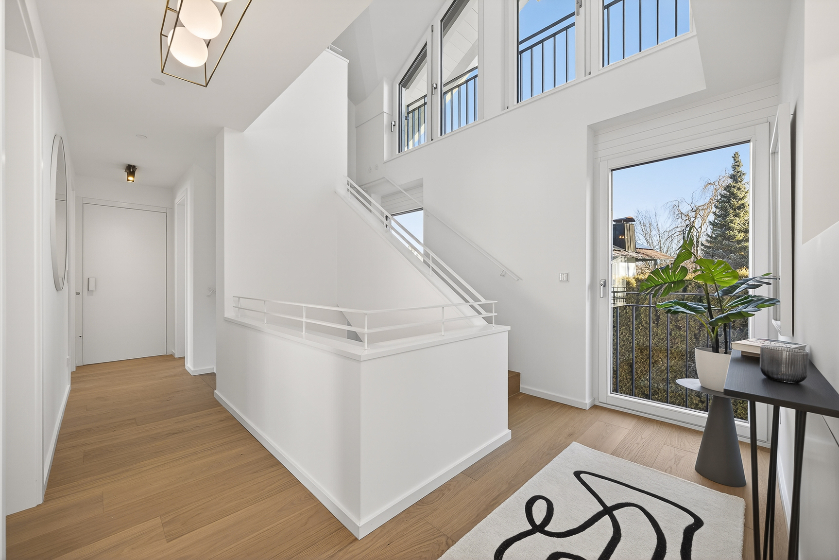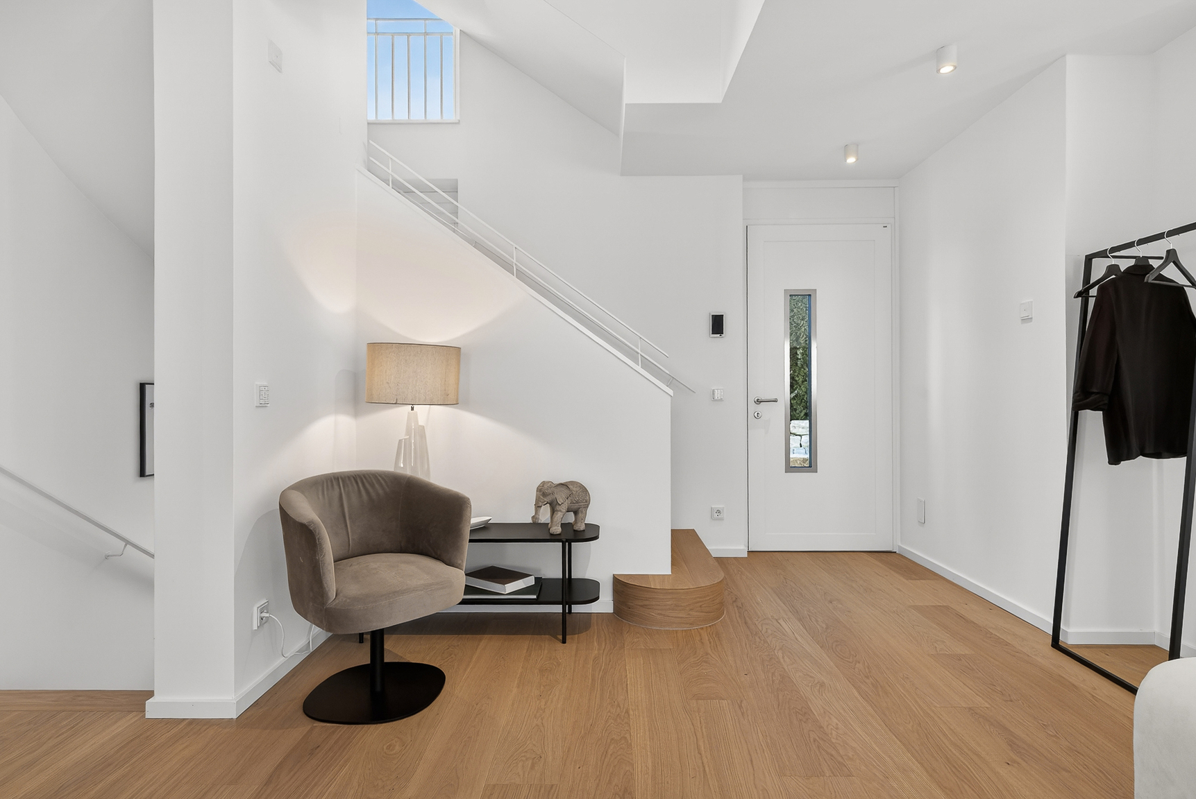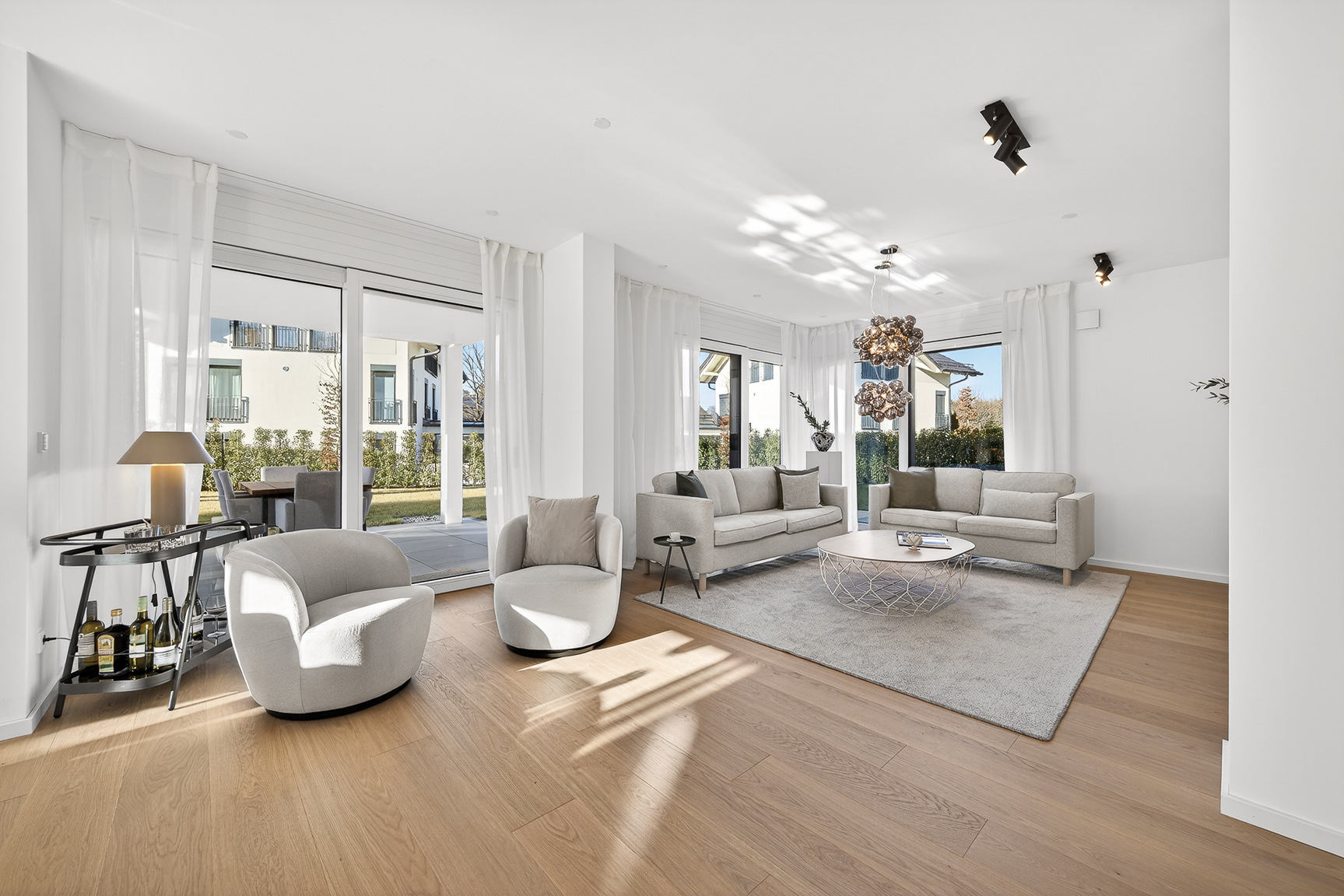 Die durchgängige Fußbodenheizung in allen Etagen ermöglicht eine wohlige und angenehme Wärme, während die modernen Holz-Alu Fenstersysteme für eine hervorragende Energieeffizienz sorgen.