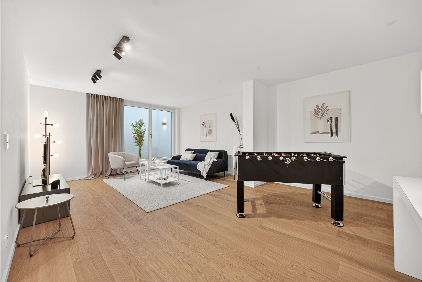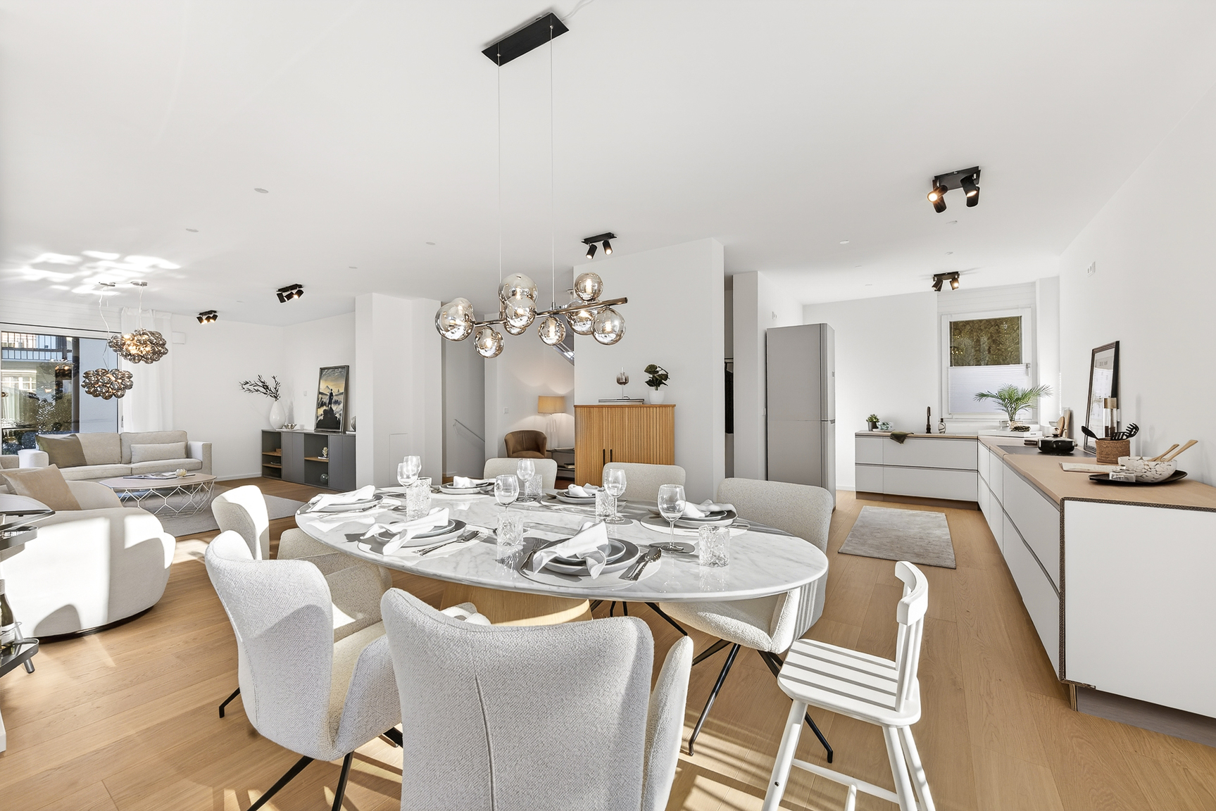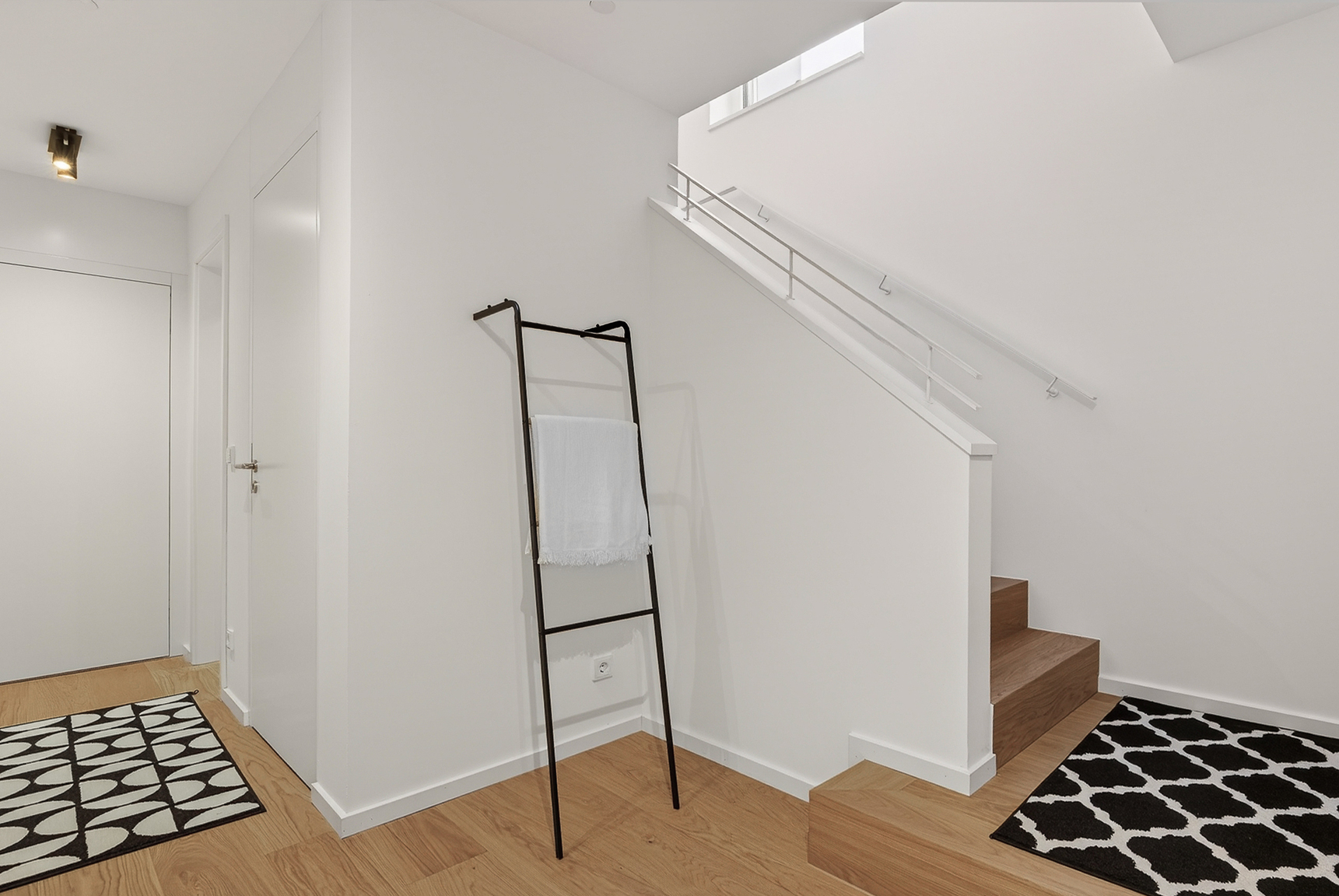 Die durchgängige Fußbodenheizung in allen Etagen ermöglicht eine wohlige und angenehme Wärme, während die modernen Holz-Alu Fenstersysteme für eine hervorragende Energieeffizienz sorgen.