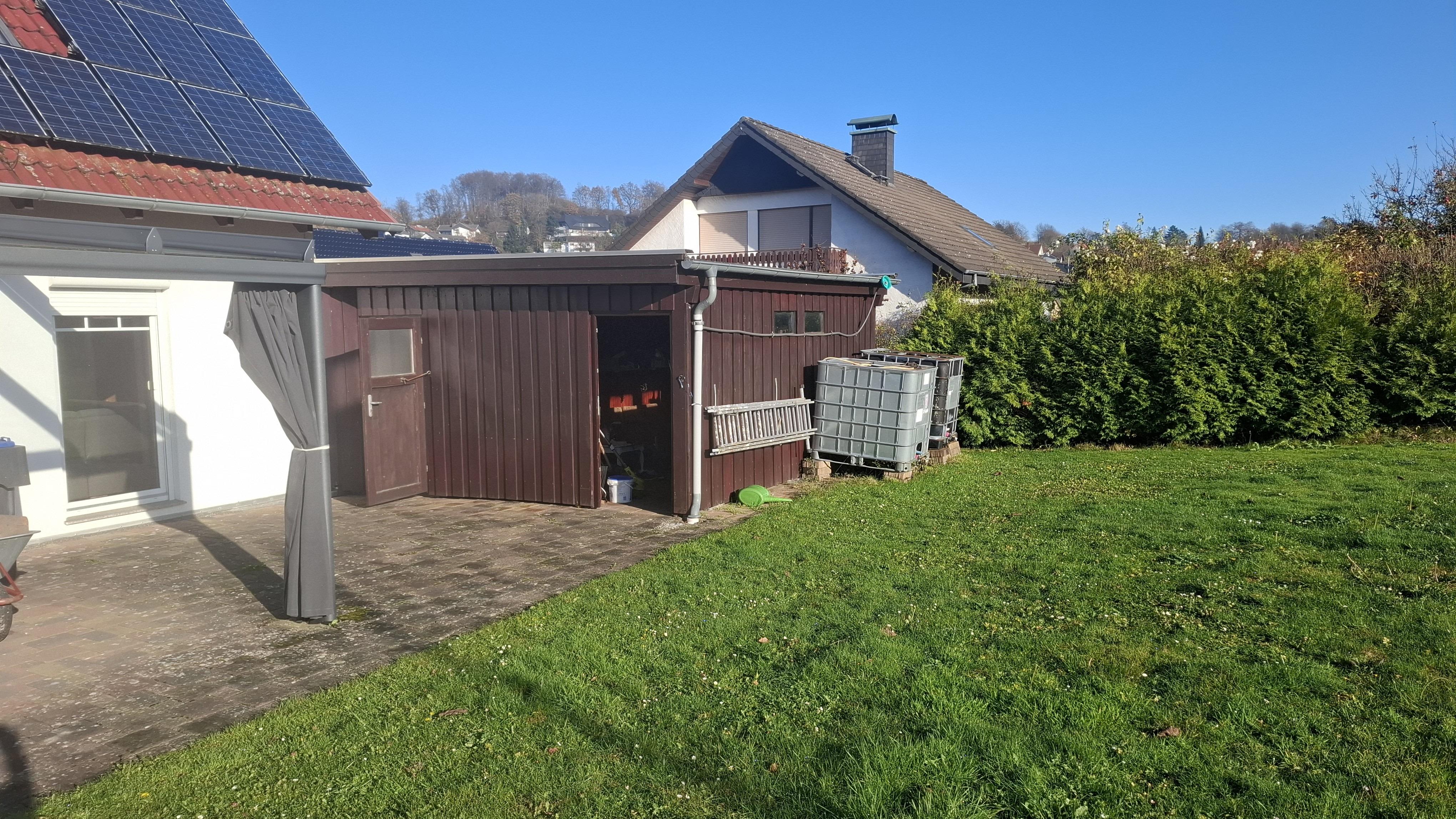 OstansichtTerrasse mit Überdachung und CarportCarportschuppenIhr Gartenparadies mit Blick in die NaturEingangsbereich mit Zugang zum FlurFlur mit TreppenhausOffene WohnlandschaftEsszimmer mit Zugang zur TerrasseHier macht kochen richtig FreudeGemütlicher Essplatz in der KücheGäste-WCBeispiel SchlafraumFür das Badvergnügen ist gesorgtDusche natürlich inklusive