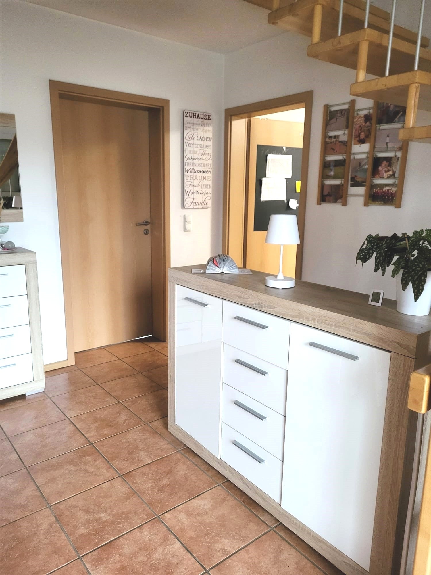 Die großflächig verlegten Terrakottafliesen vermitteln im gesamten Erdgeschoss ein warmes, mediterranes Wohngefühl. Ein sehr schönes Naturholztreppenhaus führt Sie stilvoll in das Obergeschoss.