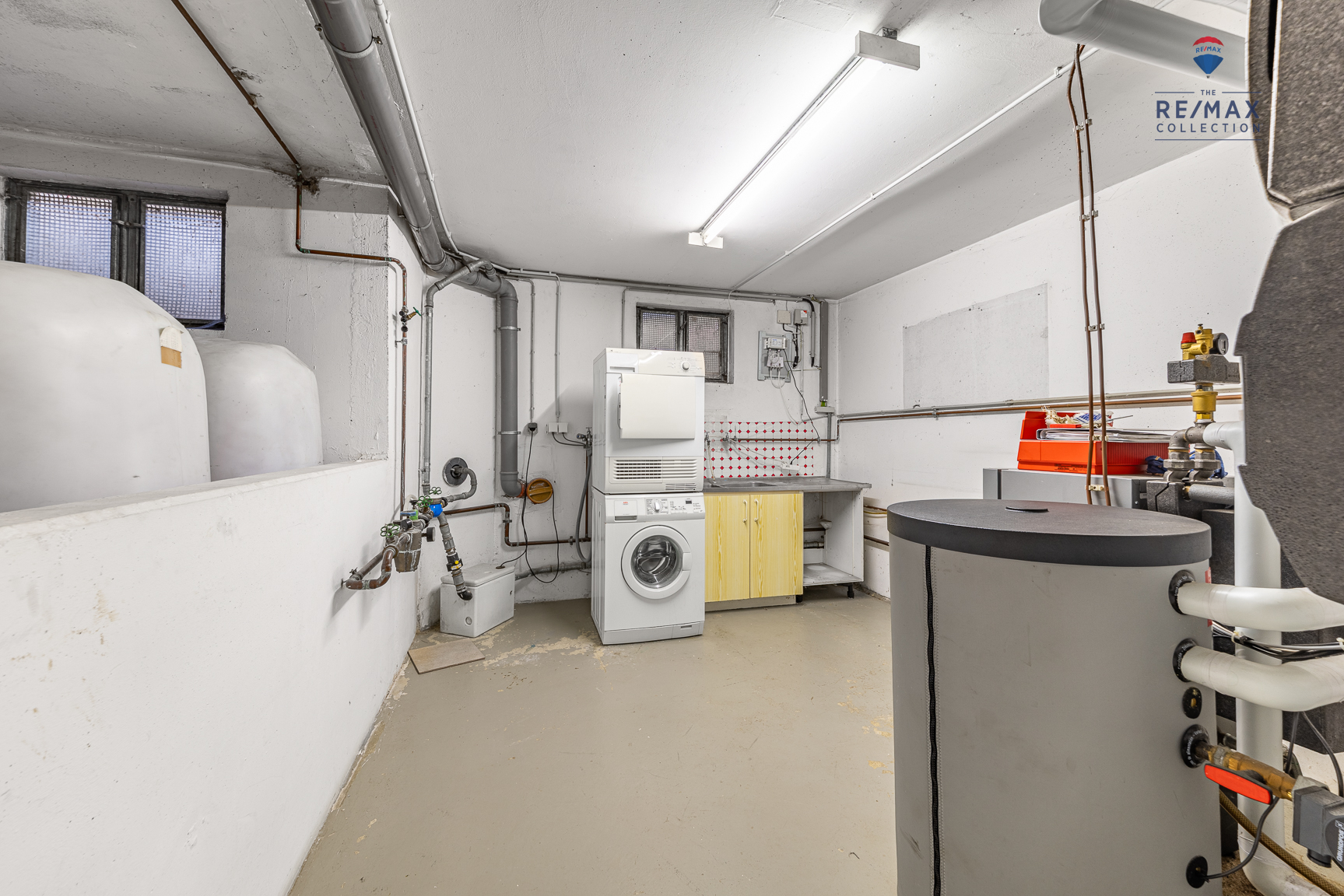 Abgerundet wird das Flächenangebot durch den Kellerbereich. Der Flur ist gefliest, die anderen Räume haben einen Betonboden. Im Heizungsraum befinden sich neben 3 Öltanks (jeweils 4.500 Liter) auch die Heizungstechnik. Ein größerer Raum (Hobbyraum) und ein Vorratsraum stehen ebenfalls zur Verfügung. Eine Garage samt Stellplatz, gehören ebenfalls zu dieser Immobilie.