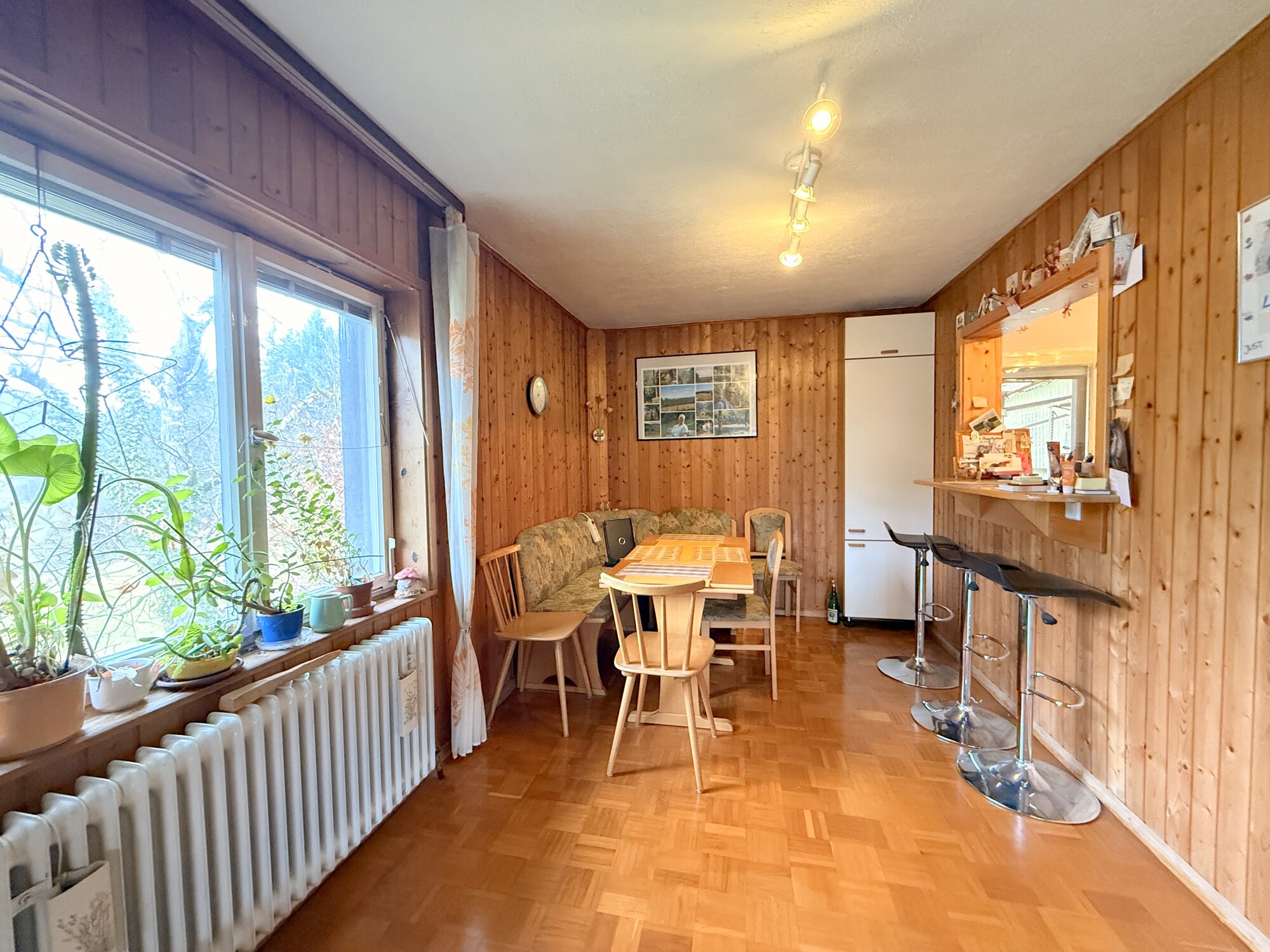 Besonders hervorzuheben ist der einladende Kamin, der an kühlen Abenden für eine gemütliche Atmosphäre sorgt. Genießen Sie sonnige Tage auf den zwei großzügigen Terrassen mit Blick auf die hübschen Berge, die zum Entspannen und Verweilen einladen. Die durch und durch gut durchdachte Raumaufteilung dieses Hauses bietet zahlreiche Gestaltungsmöglichkeiten und viel Potenzial für individuelles Wohnen.