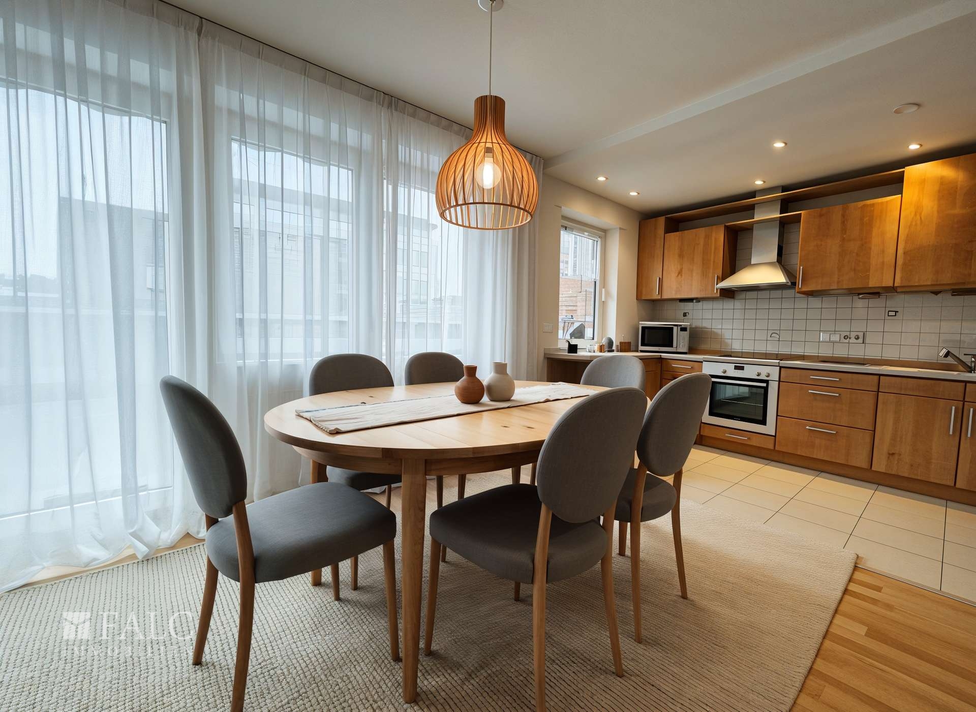 Die große Dachterrasse erreichen Sie über das Wohnzimmer oder dem Schlafzimmer und ist mit 33 m² überdurchschnittlich großzügig.