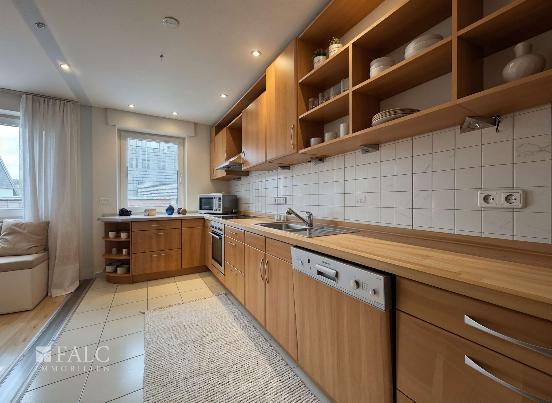 Die Wohnung ist zudem mit einer noch sehr guten Einbauküche ausgestattet, die offen in den Wohn- und Essbereich integriert wurde.