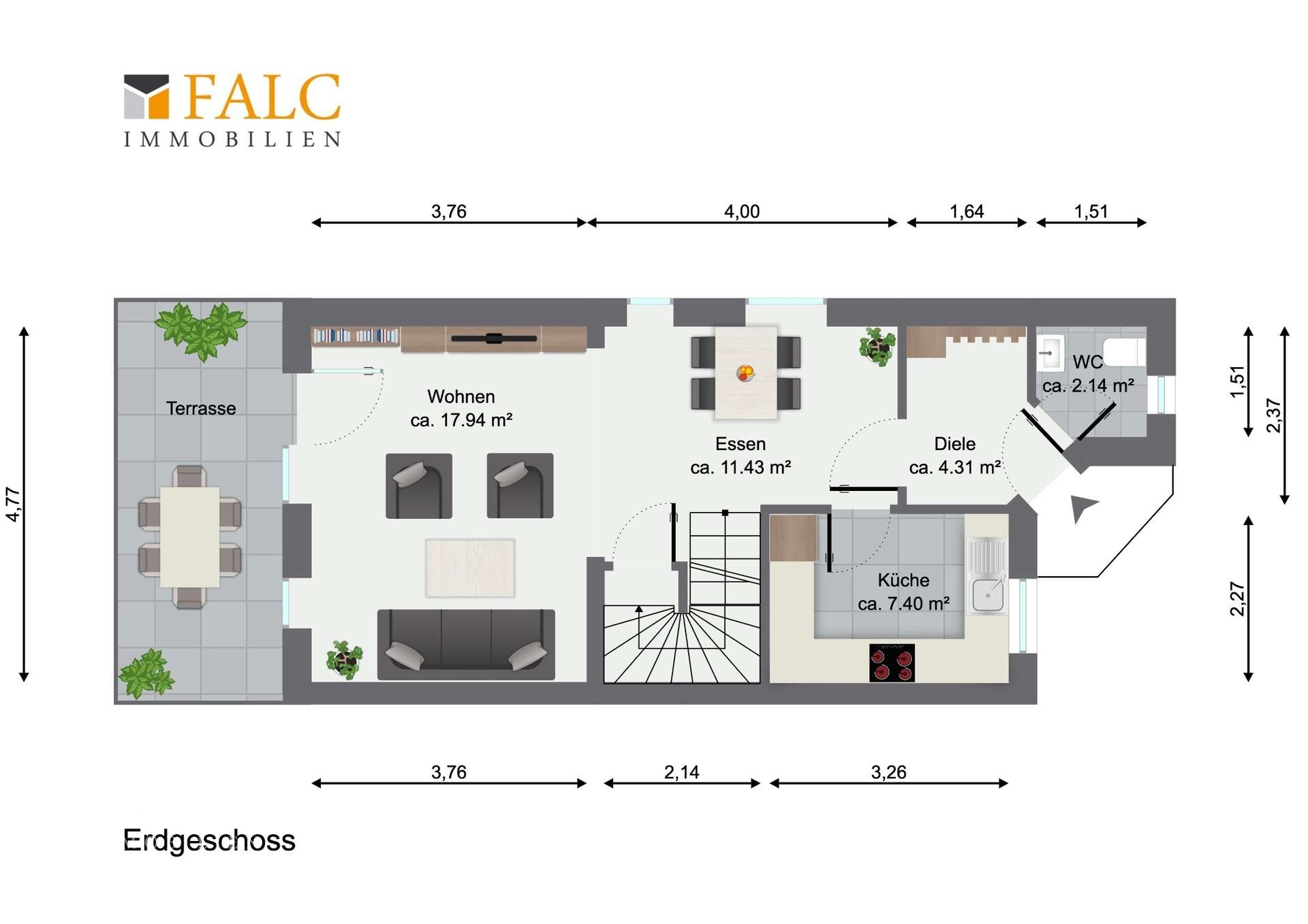 47,48 m² - Erdgeschoss (*Wohnfläche*)