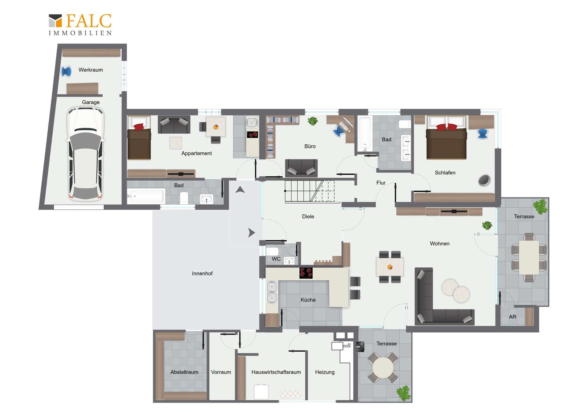 Beim ausgewiesenen Preis handelt es sich um den Angebotspreis, der sich durch Verhandlungen auch verändern kann. Die im Exposé ausgewiesene Provision ist der Teil, den der Käufer aufgrund unserer Doppeltätigkeit nach Abschluss des Kaufvertrages zu zahlen hat. Auf unserer Homepage www.falcimmo.de unter der Rubrik Immobiliensuche halten wir für Sie zum einen den Onlinesuchauftrag bereit, haben aber auch viele andere nützliche Informationen für Kaufinteressenten und Eigentümer.