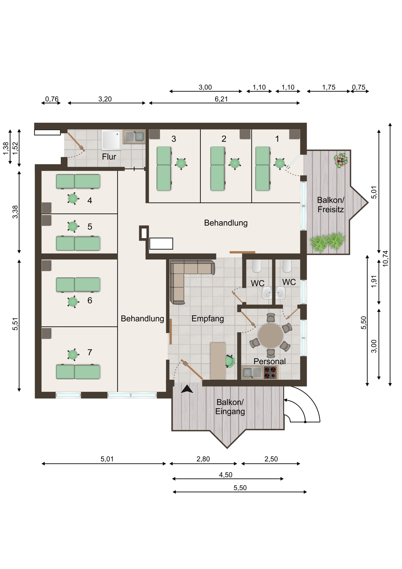Ein Ort zum Ankommen, Heilen und Wachsen-oder zum barrierefreien Wohnen Diese weitläufige Wohnung, aktuell als Praxis umgestaltet, bietet Raum für Gesundheit, Begegnung und Entwicklung. In bester citynaher Lage gelegen, empfängt sie Patientinnen und Patienten mit einer offenen, lichtdurchfluteten Atmosphäre, die vom ersten Moment an Vertrauen schafft. Die liebevoll gestalteten Räumlichkeiten verbinden Funktionalität mit Stil und laden dazu ein, sich rundum wohlzufühlen. Auf insgesamt fünf großzügigen Behandlungsplätzen finden Physiotherapie, Massage, Krankengymnastik und weitere therapeutische Konzepte ideale Bedingungen. Der bestehende Kundenstamm kann auf Wunsch übernommen werden und bietet eine wertvolle Grundlage für einen nahtlosen Start oder eine erfolgreiche Erweiterung. Der barrierefreie, eigene Eingang führt in einen freundlichen Empfangsbereich mit Theke, der Professionalität und Herzlichkeit vereint. Moderne, stylische Laminatböden unterstreichen den zeitgemäßen Charakter der Praxis, während große Fenster die Räume mit Tageslicht durchfluten und eine angenehme Ruhe ausstrahlen. Ergänzt wird das Raumangebot durch eine Teeküche, eine separate Fangoküche mit Dusche sowie durch eine Terrasse und einen Gemeinschaftsgarten, die sowohl Mitarbeitenden als auch Patienten kleine Pausen im Grünen ermöglichen. Für eine entspannte An- und Abreise stehen zwei Tiefgaragen-Stellplätze sowie drei Außenstellplätze zur Verfügung – ein weiterer Pluspunkt für Komfort und Erreichbarkeit. Diese Praxis ist mehr als nur ein Arbeitsplatz: Sie ist ein Ort, an dem Therapie gelebt wird, an dem Menschen sich aufgehoben fühlen und an dem neue Ideen wachsen dürfen. Ob Sie hier Wohnen oder Arbeiten möchten- diese Immobilie lässt Ihnen die freie Wahl.