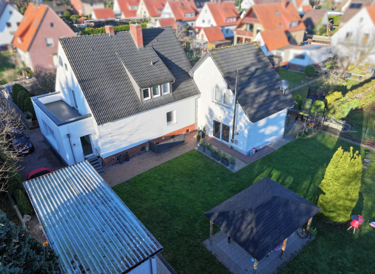 Luftbild-Ansicht 1Eingangsbereich(e)Wohn- und EssbereichWohn- und EssbereichWohn- und EssbereichEssplatzOffene KücheBadezimmer im ErdgeschossSchlafzimmer Anbau - Eingangsbereich Anbau - ErdgeschossAnbau - ObergeschossGartenansicht (links Haupthaus - rechts Anbau)Vorgarten am EingangsbereichHinterer GartenbereichGarageHaupthaus ErdgeschossHaupthaus ObergeschossAnbau ErdgeschossAnbau ObergeschossNeu im Angebot