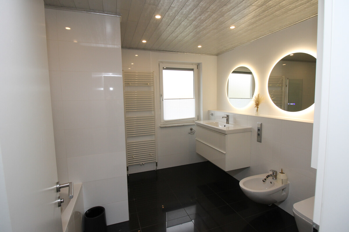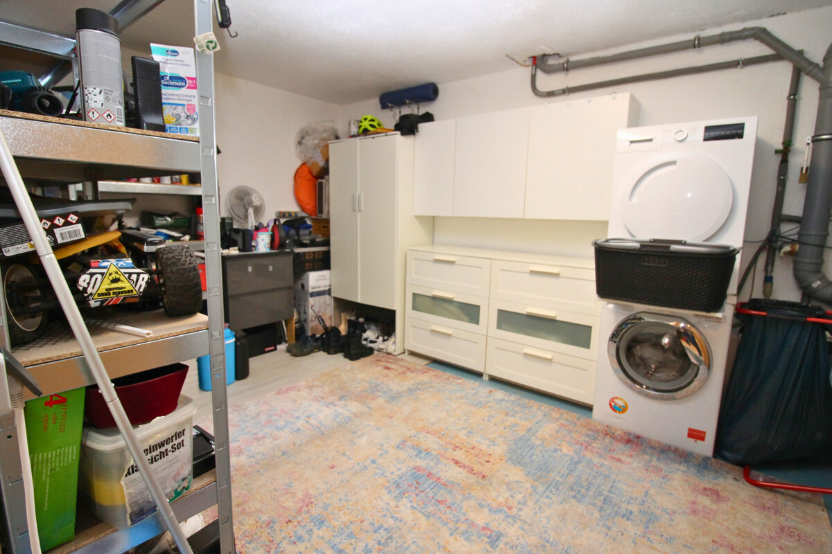 Zudem ist der Keller mit einer neuen Wärmepumpe ausgestattet. Ein modernes Be- und Entlüftungssystem sorgt für ein gesundes Raumklima und schließt Schimmelbildung zuverlässig aus. Alle Fenster sind doppelt verglast, was nicht nur für hervorragende Wärmeisolierung, sondern auch für effektiven Schallschutz sorgt.