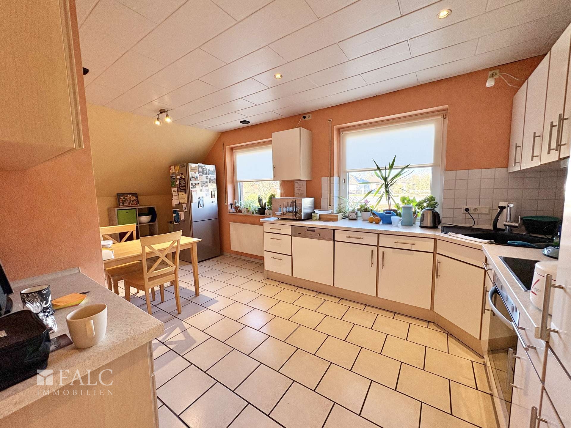 Die Dachgeschosswohnung ist seit 2006 zuverlässig vermietet und erzielt eine monatliche Kaltmiete von 650 €. Sie bietet ebenfalls vier Zimmer mit bis zu drei Schlafzimmern, eine gemütliche Loggia, ein Tageslichtbad mit Dusche und Badewanne sowie einen besonders großen, ausbaufähigen Dachbodenbereich, der zusätzliche Gestaltungsmöglichkeiten eröffnet.