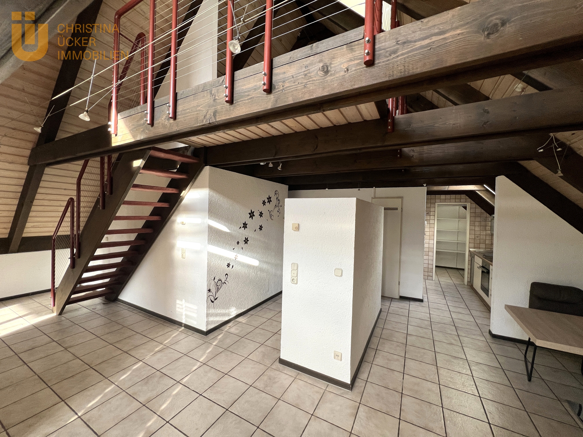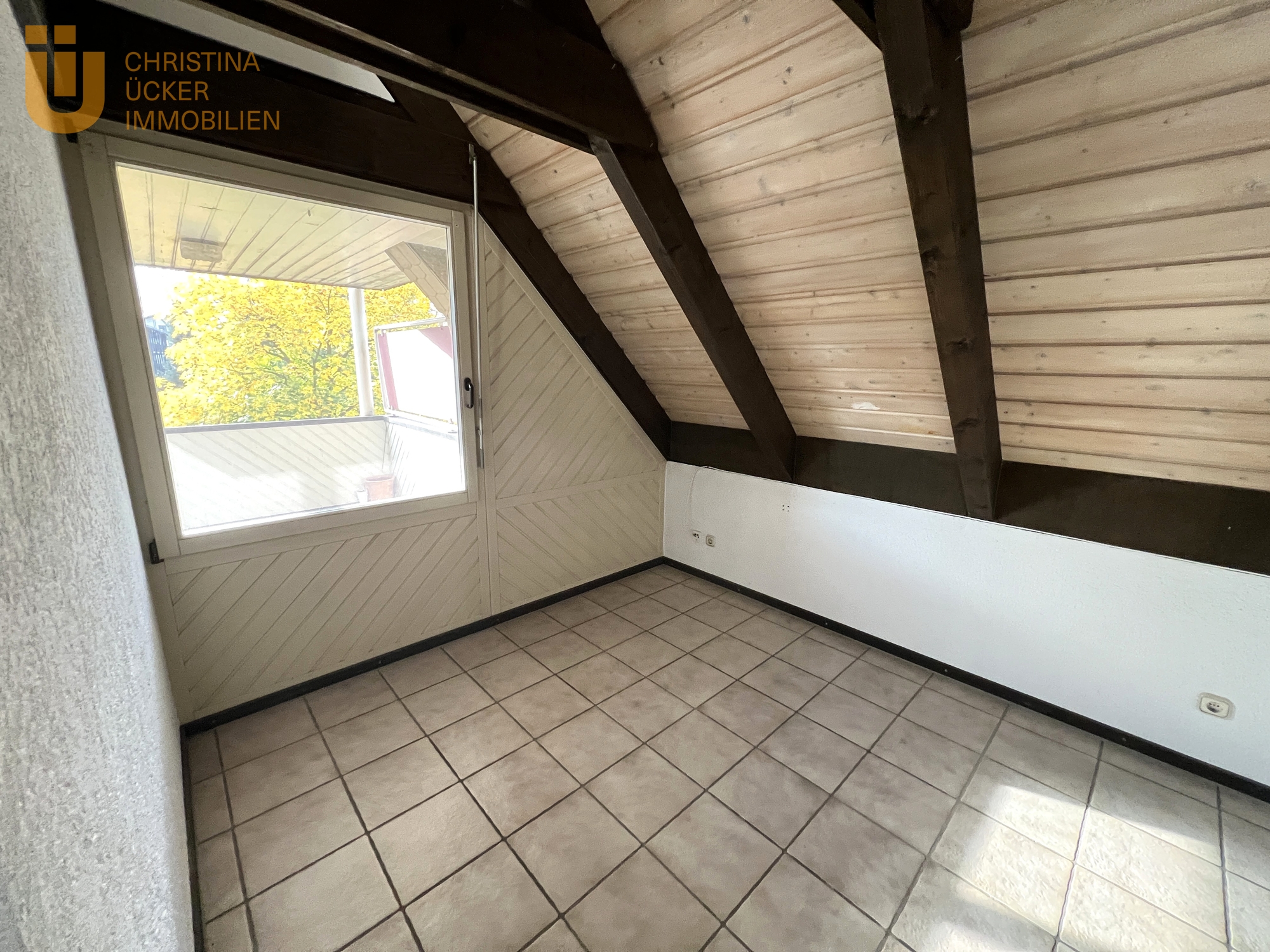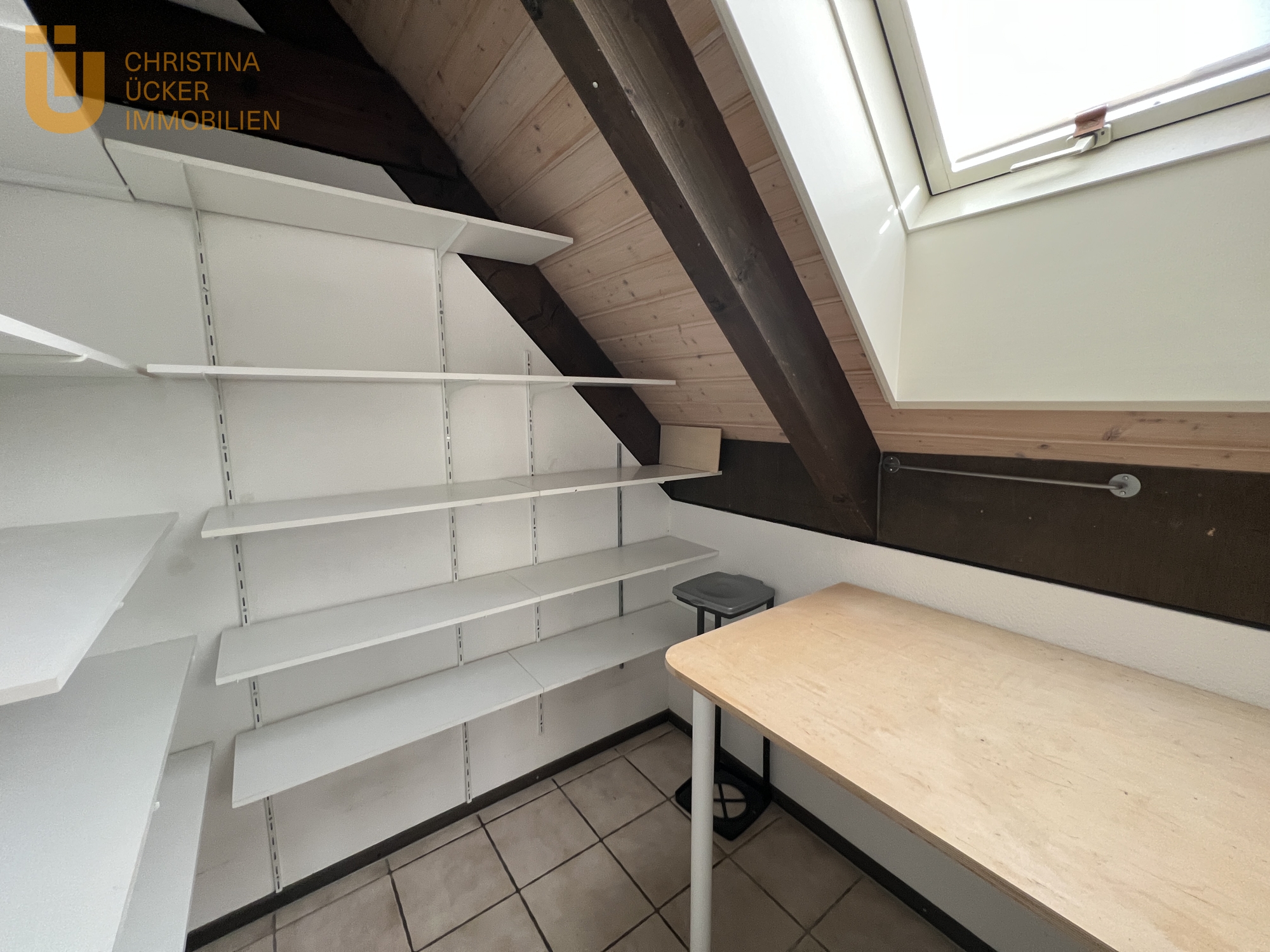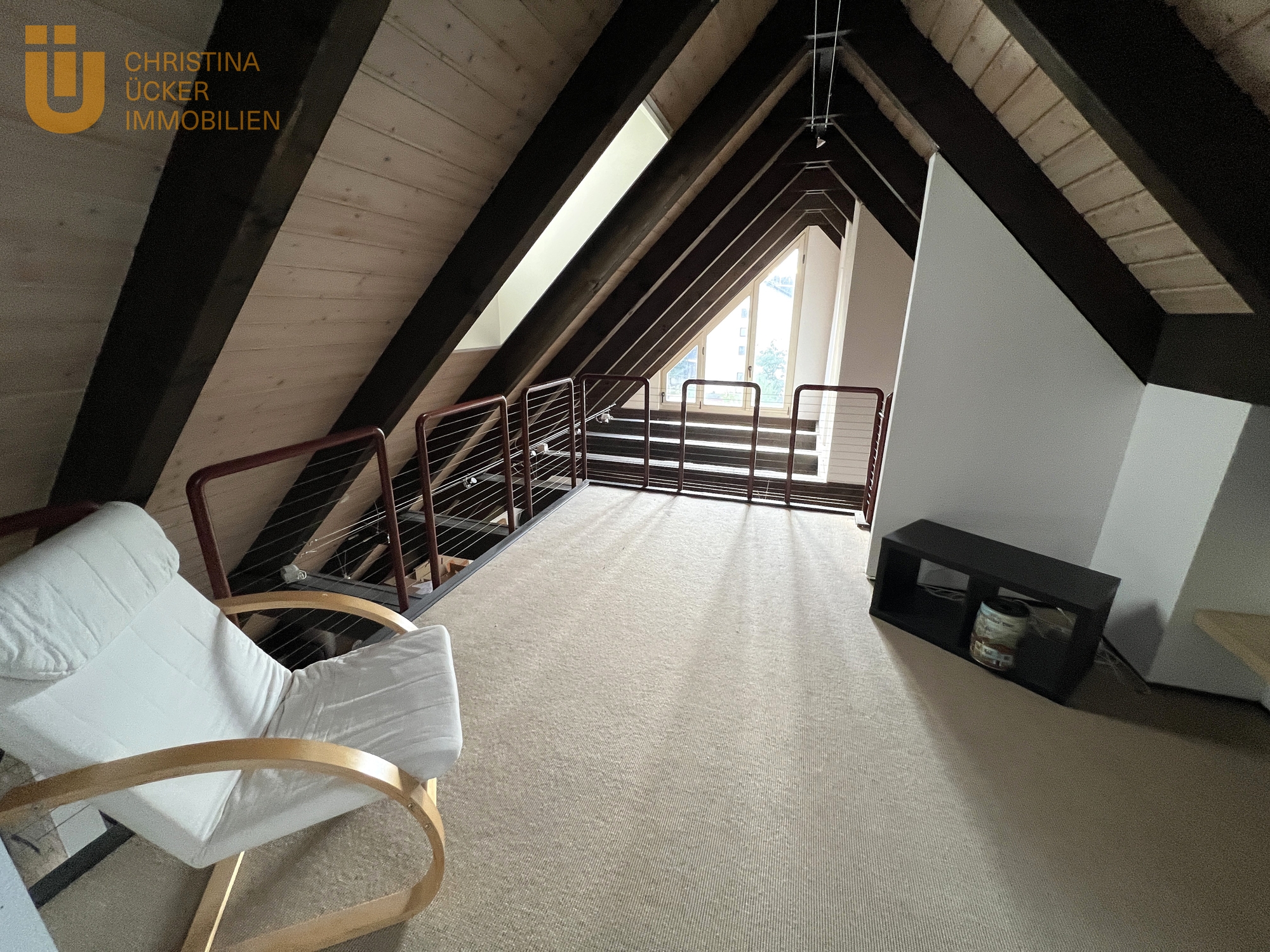 Über eine Treppe erreicht man das ausgebaute DG. Der offene Bereich am Ende der Treppe hat einen Galerie-Charakter und bietet einen schönen Blick hinunter ins Wohnzimmer. Hier lässt sich ein kreativer Arbeitsbereich oder eine kleine Lounge einrichten. Ein weiteres separates Zimmer unter dem Dach eignet sich perfekt als Kinderzimmer, Gästezimmer oder Homeoffice.