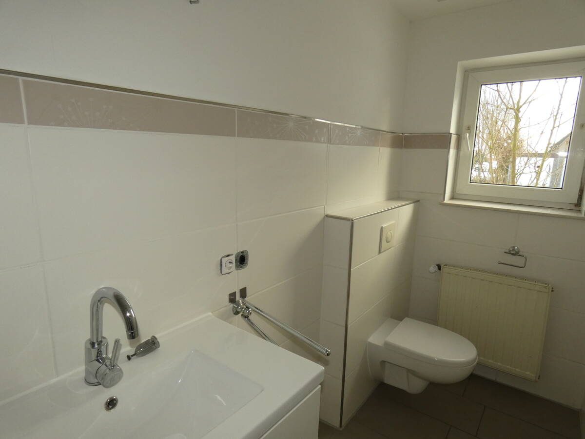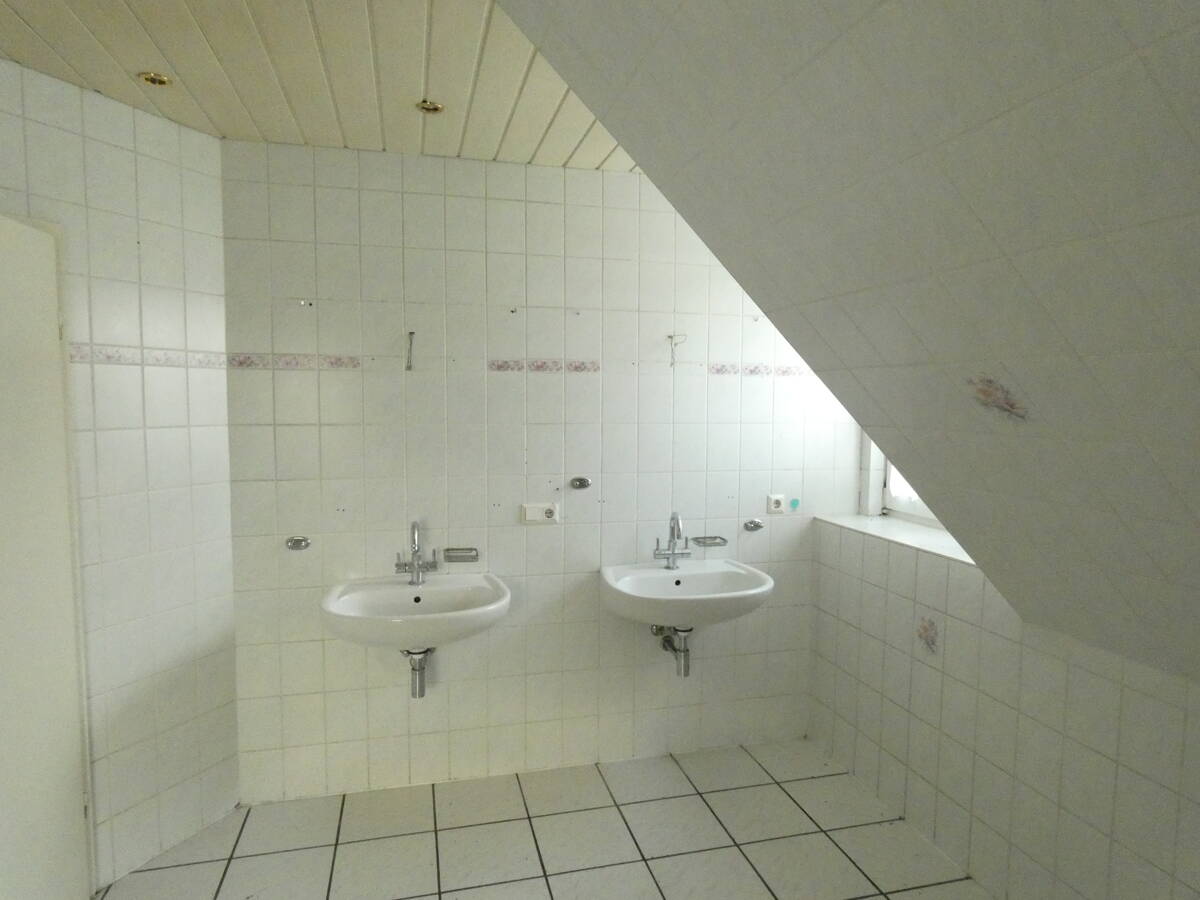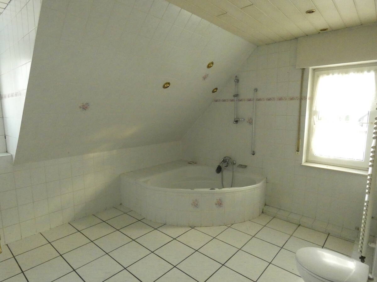 Das Haus ist baujahrgerecht ausgestattet und bedarf der Zeit geschuldet einer Renovierung. Der Wohnkomfort wird durch insgesamt zwei Badezimmer mit Tageslichtfenstern auf beiden Ebenen erhöht und sorgt für Bequemlichkeit bei Familie oder Gästen. Im Erdgeschoss gibt es eine moderne ebenerdige Dusche und im Obergeschoss ist das Bad mit einer Eckbadewanne und Doppelwaschbecken ausgestattet.