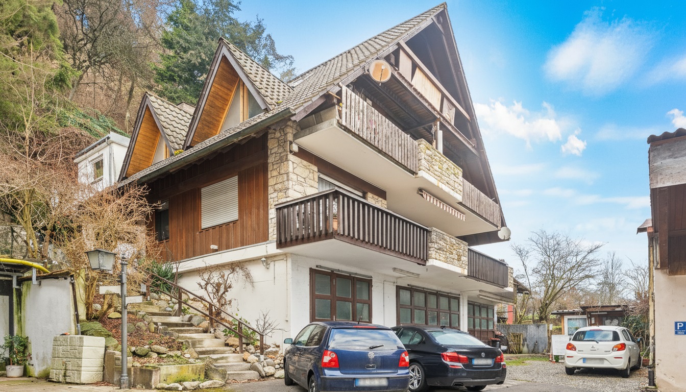 Zur Wohnung gehört ein eigenes Waldstück (ca. 4.000,- m²) in starker Hanglage sowie eine sehr große Doppelgarage, die auch sehr gut als Werkstatt oder Lager genutzt werden kann.