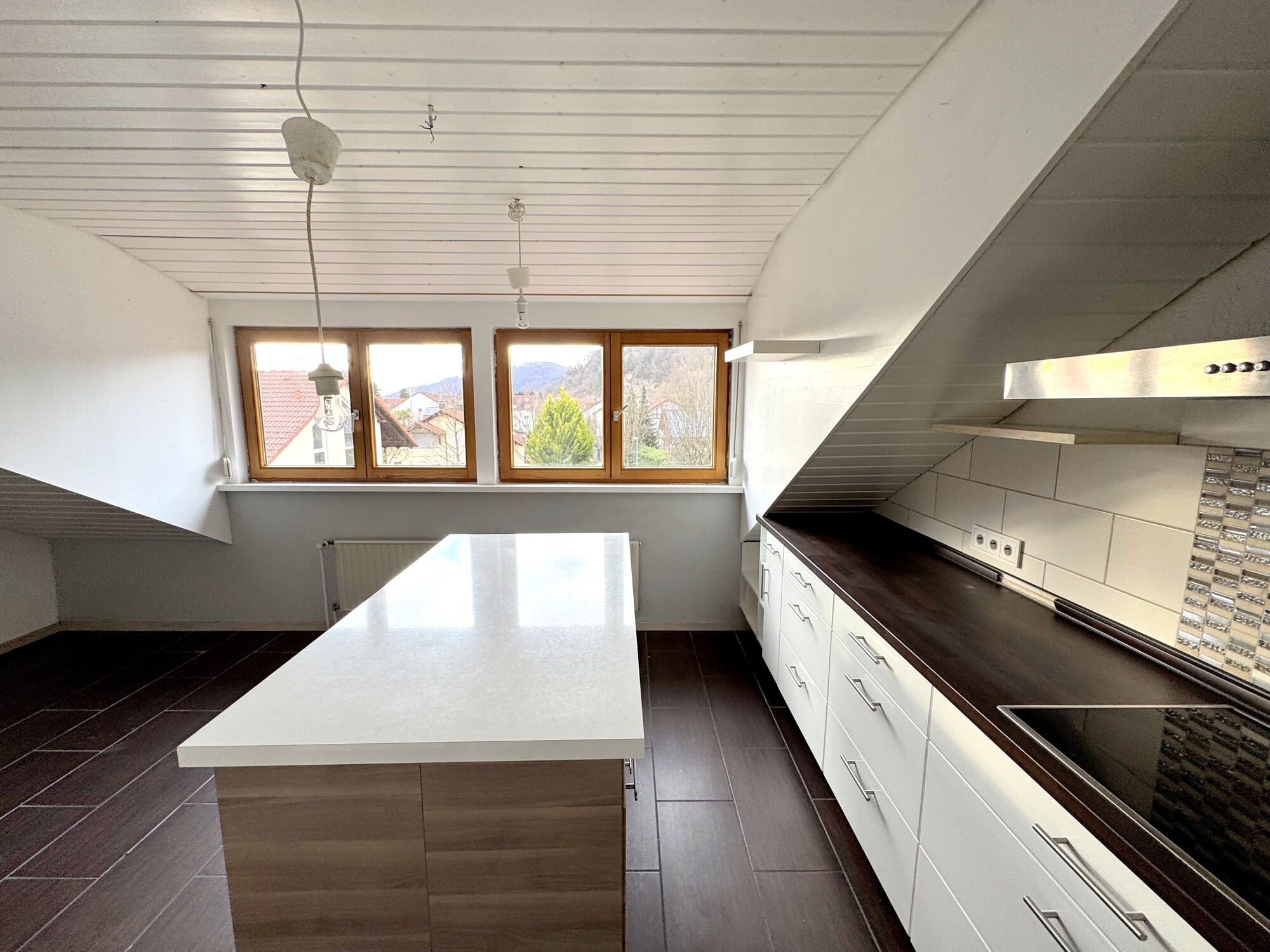 - Küche mit Kochfeld und Dunstabzugshaube