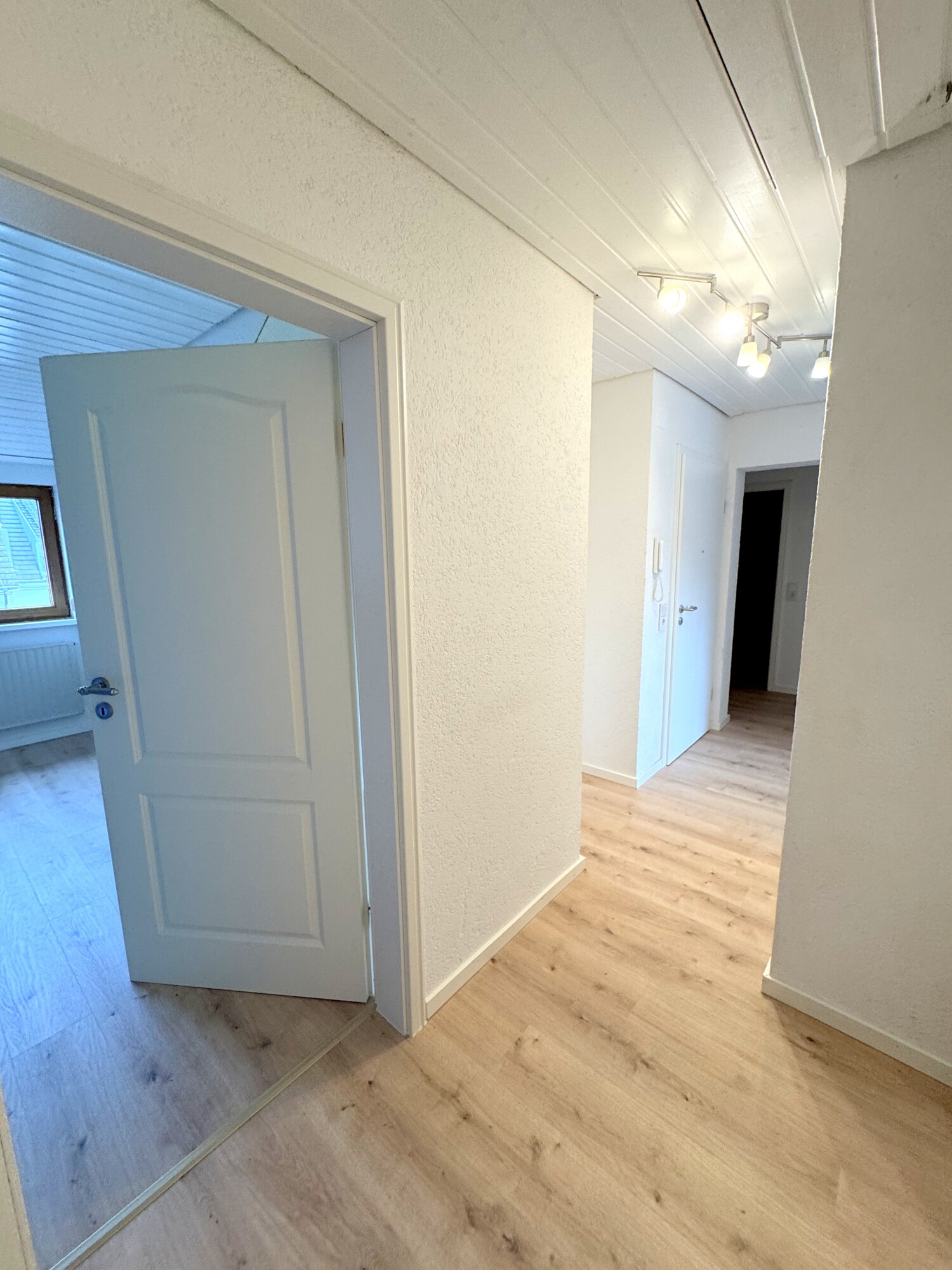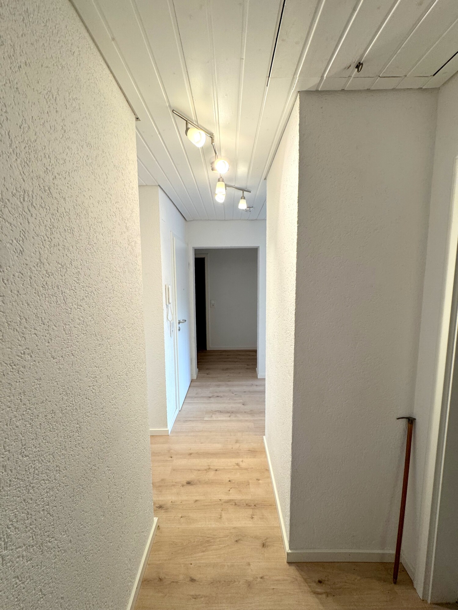 - Weiße Holzpaneel Decken in mehreren Räumen