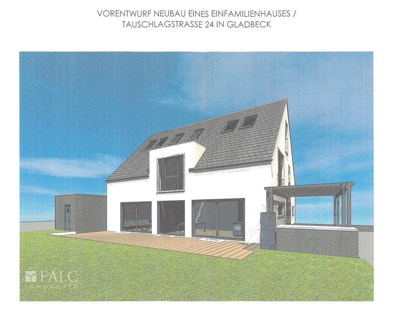 Das Grundstück bietet vielseitige Bebauungsmöglichkeiten, die sich harmonisch in das bestehende Wohnumfeld einfügen lassen. Eine Bebauung mit einem Einfamilien- oder Doppelhaus erscheint naheliegend. Genauere Details zu Art und Maß der baulichen Nutzung sind mit dem zuständigen Bauamt der Stadt Gladbeck abzustimmen. So liegt bereits eine Baugenehmigung zur Realisation des Visualisierungsvorschlages vor.