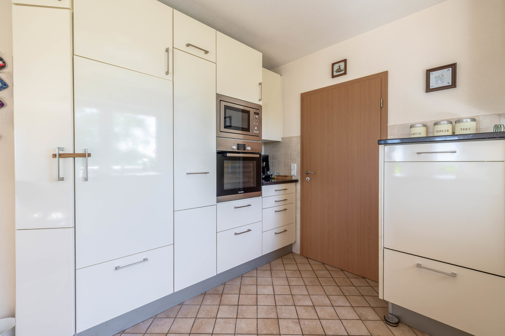 Eine hochwertige Einbauküche ist bereits im Kaufpreis enthalten. Zwei Terrassen – jeweils mit elektrischen Markisen – laden zum Entspannen ein: Genießen Sie den Sonnenaufgang auf der einen und den Sonnenuntergang auf der anderen Seite.