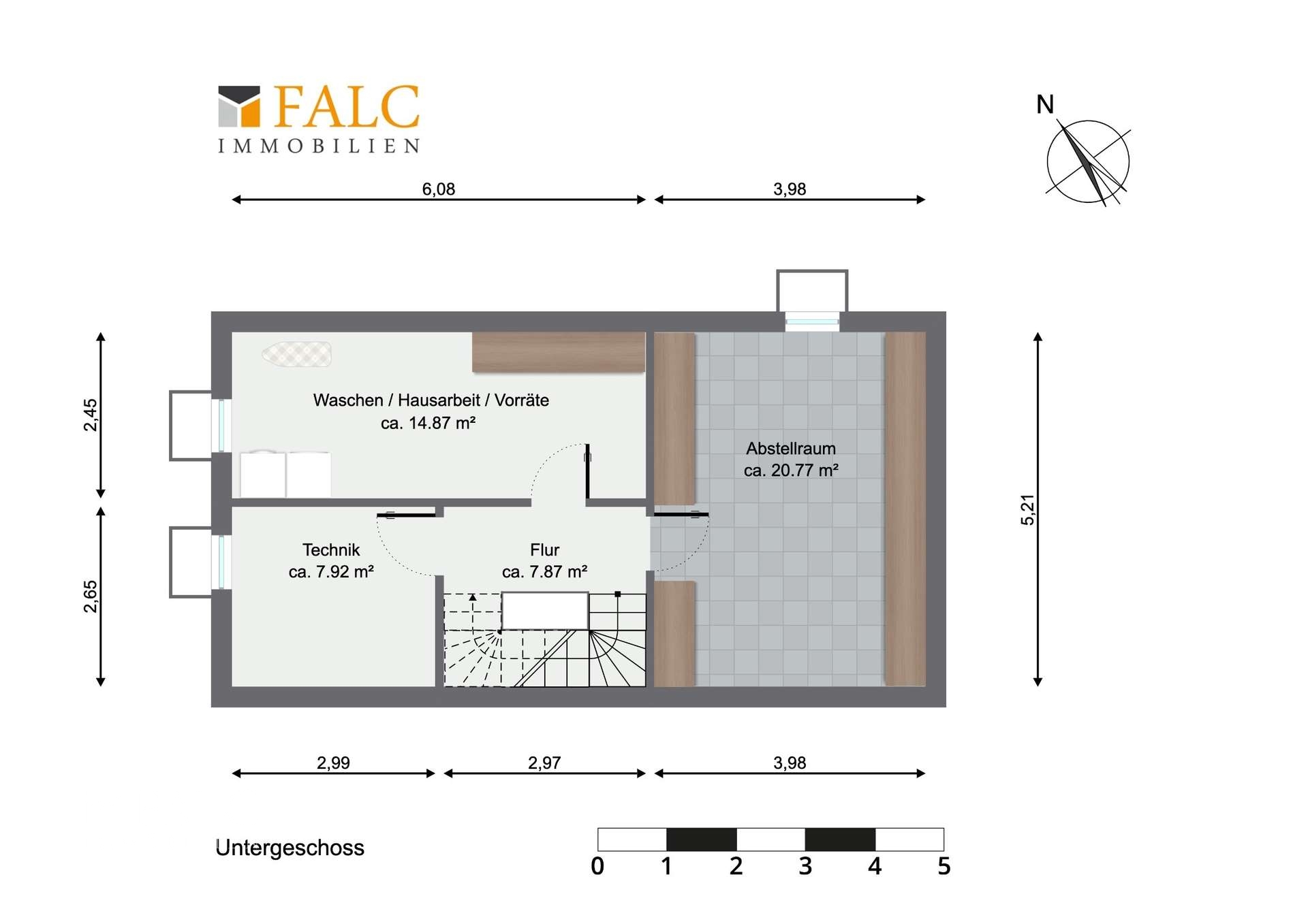 Im Untergeschoss stehen Ihnen weitere praktische Räume zur Verfügung: Ein Hauswirtschaftsraum, ein geräumiger Abstellraum sowie ein separater Technikraum und eine Waschküche sorgen für Ordnung und Funktionalität im Alltag. Damit bleibt die Wohnfläche in den oberen Geschossen frei für das Wesentliche, nämlich Ihrem Wohlfühlambiente.
