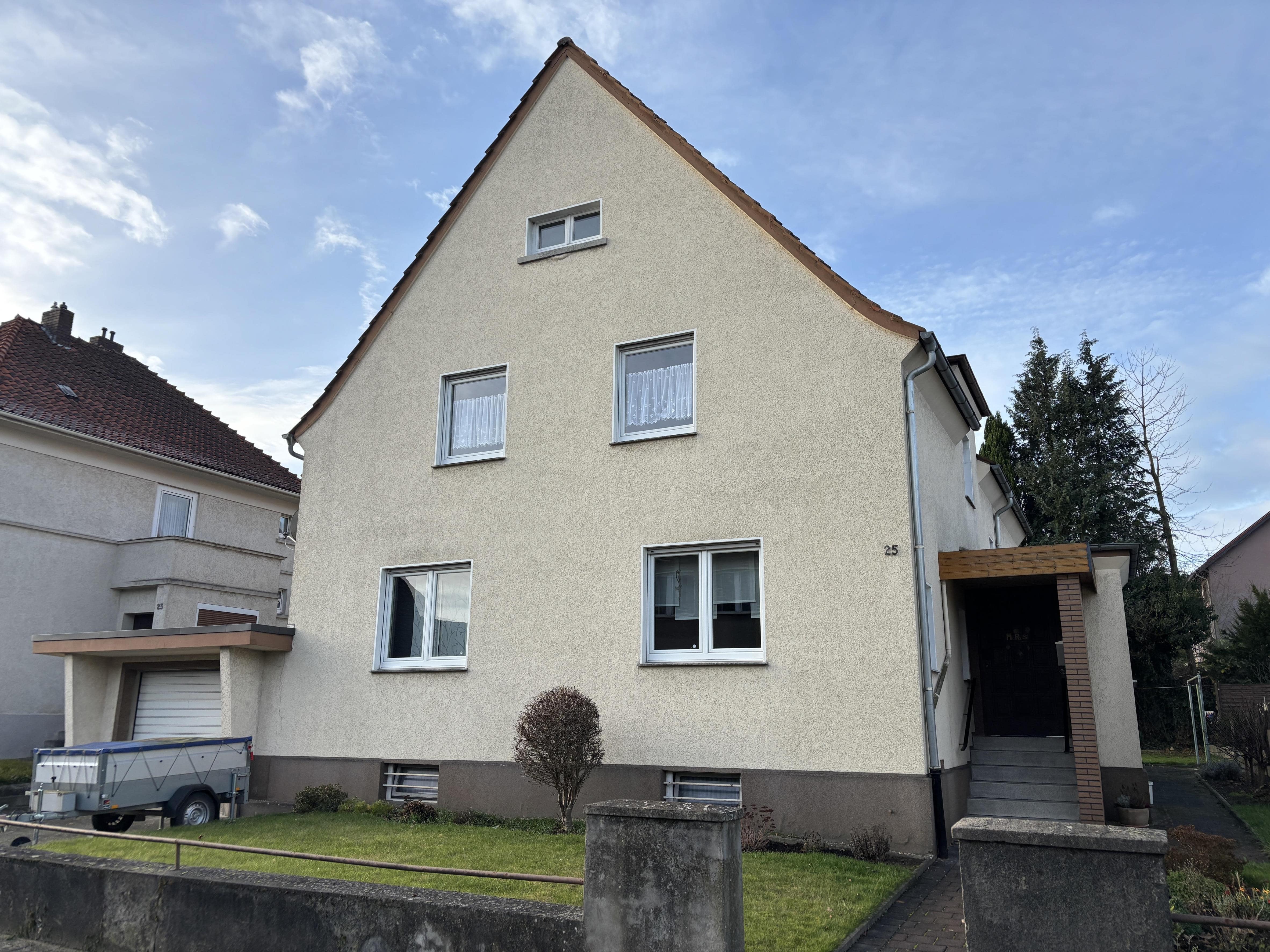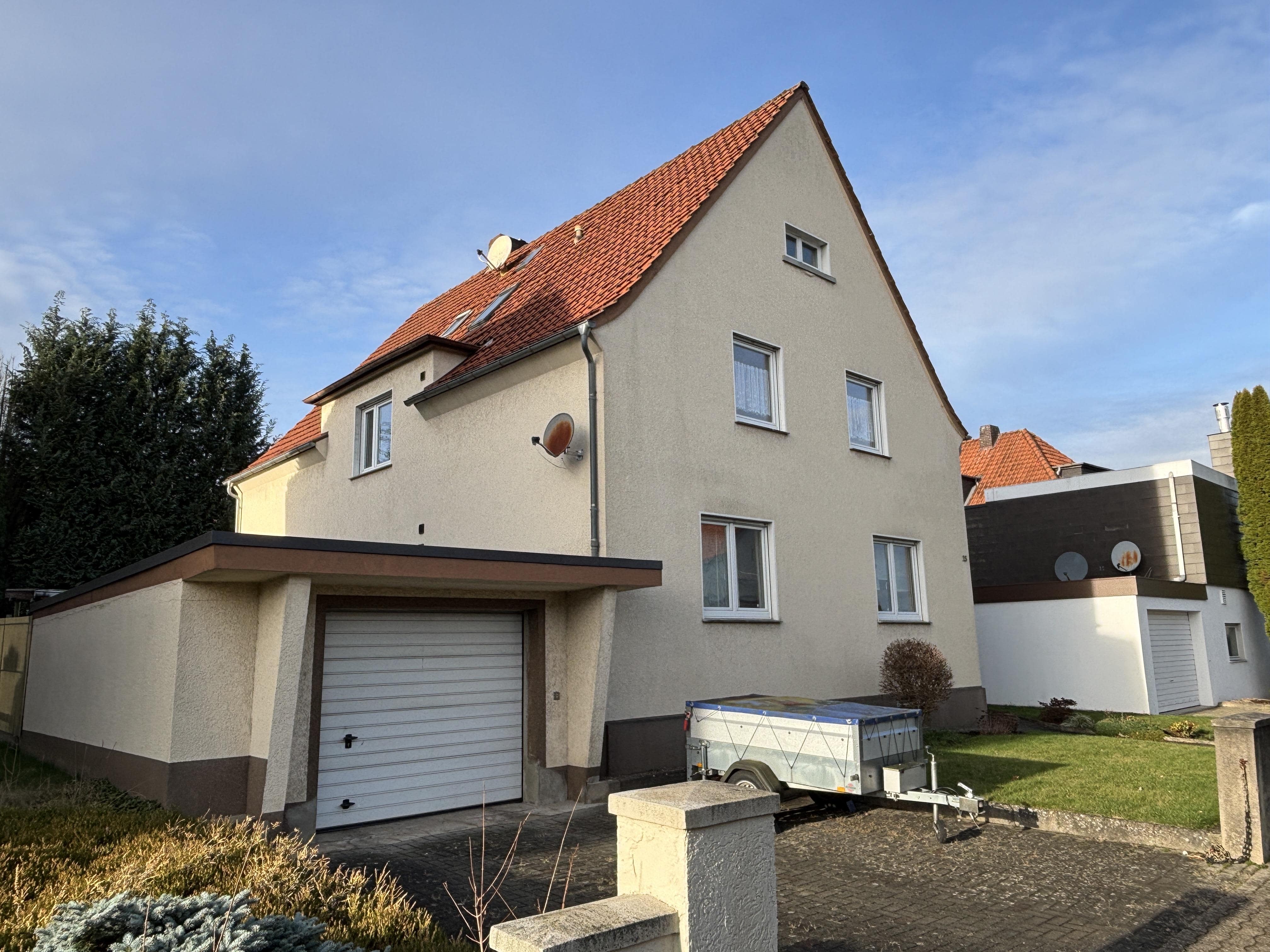 Dieses gepflegte Zweifamilienhaus am westlichen Zentrumsrand kann schon bald Ihr neues Zuhause werden. Vielleicht hat es als Mehrgenerationenhaus genau die richtige Größe und Aufteilung für Sie? Oder wollen Sie nur eine Wohnung selbst nutzen und die andere vermieten? Die knapp 90 m² Wohnfläche pro Wohnung teilen sich in 3-4 Zimmern, Bad, Küche, Abstellraum und WC auf. Das Erdgeschoss besitzt zusätzlich eine umschlossene und überdachte Terrasse ("Wintergarten"). Als besonderes Plus ist noch der ausgebaute Spitzboden zu erwähnen. Bestimmt finden Sie auch hierfür die passende Nutzung. Der großzügige Keller und die geräumige Garage mit Elektromotor runden dieses Immobilienangebot ab. Wann möchten Sie es kennenlernen? Sprechen Sie uns an!