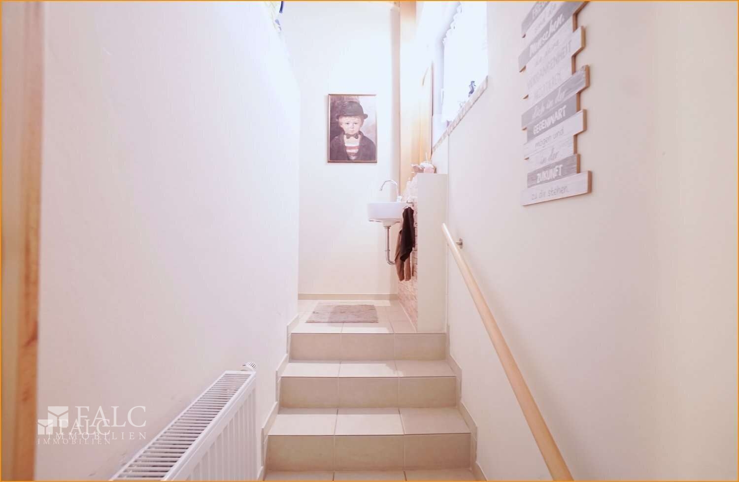 Fußböden: hochwertig gefliest im Wohnbereich, gemütliches Laminat im Schlafzimmer und Obergeschoss
