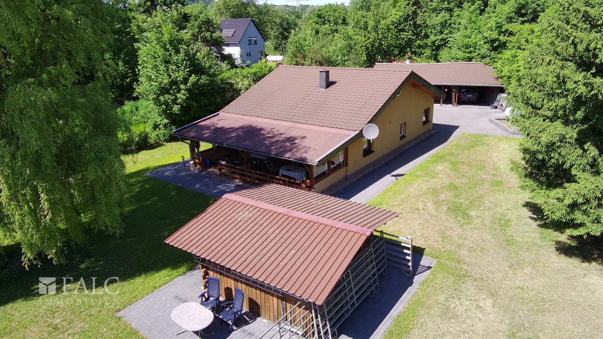 Das Anwesen liegt eingebettet in eine ca. 5.726 m² große Fläche mit gepflegtem Grün, Stallungen und viel Raum für Selbstversorgung, Hobby oder Tiere. Ideal für Singles oder Paare, die das Besondere suchen – oder einfach Platz zum Atmen brauchen.