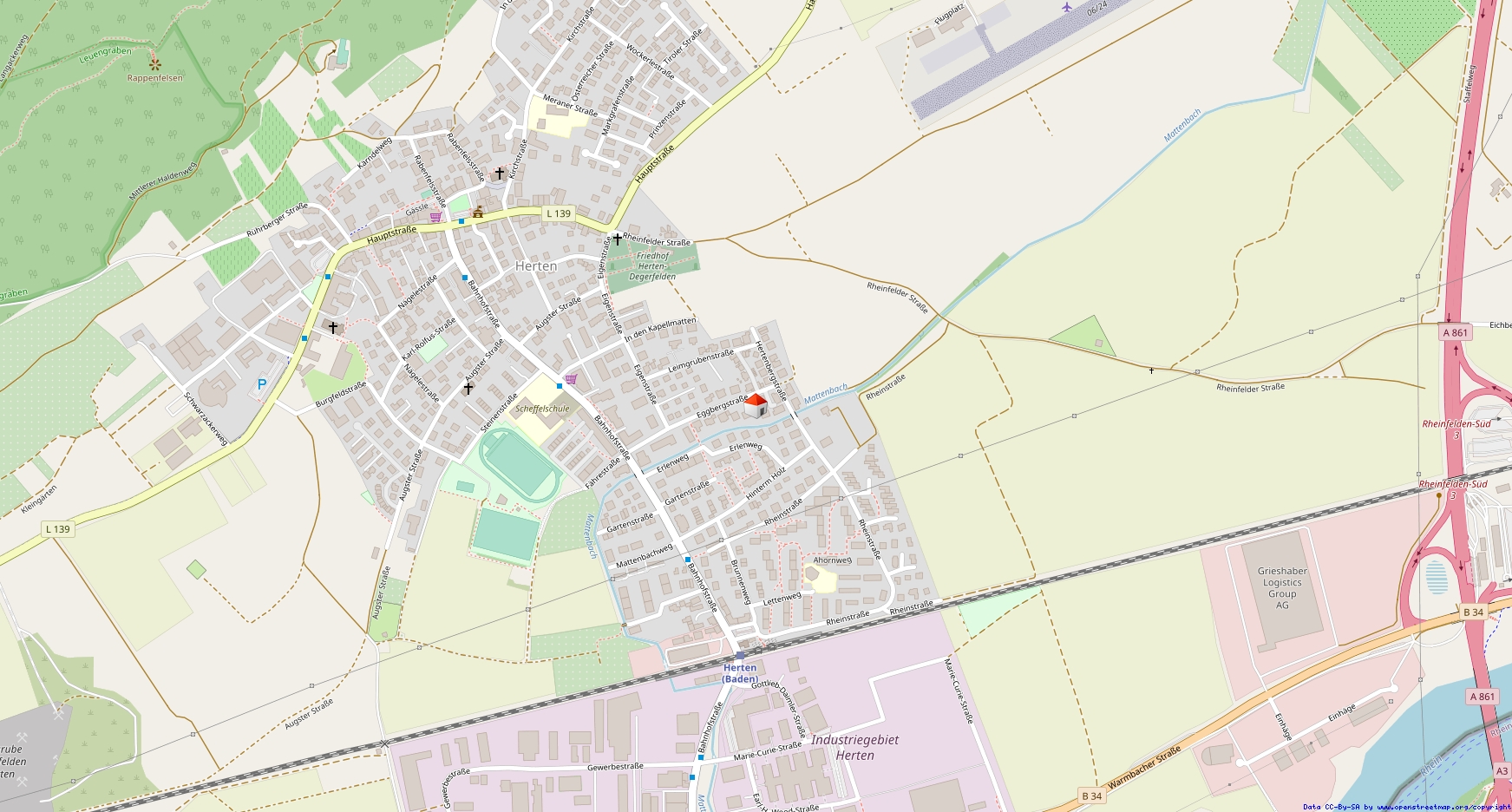 Die Immobilie befindet sich in einer ruhigen und dennoch gut angebundenen Lage in Rheinfelden, Herten (Baden). In unmittelbarer Nähe gibt es mehrere Bushaltestellen, die in etwa fünf Gehminuten erreichbar sind, was eine bequeme Anbindung an den öffentlichen Nahverkehr gewährleistet. Der Bahnhof Herten (Baden) ist ebenfalls in ca. zehn Minuten zu Fuß erreichbar und bietet weitere Möglichkeiten für Pendler.