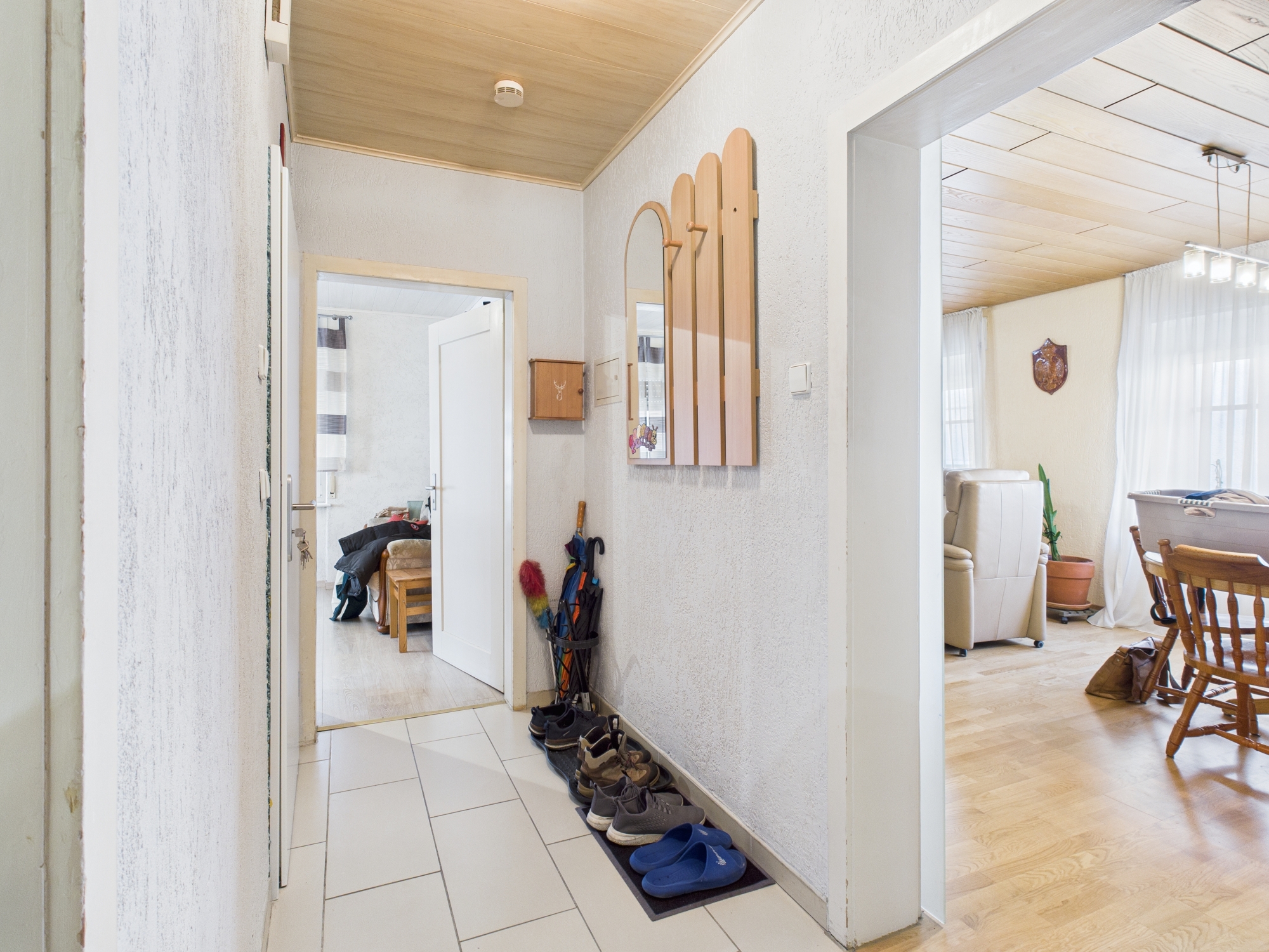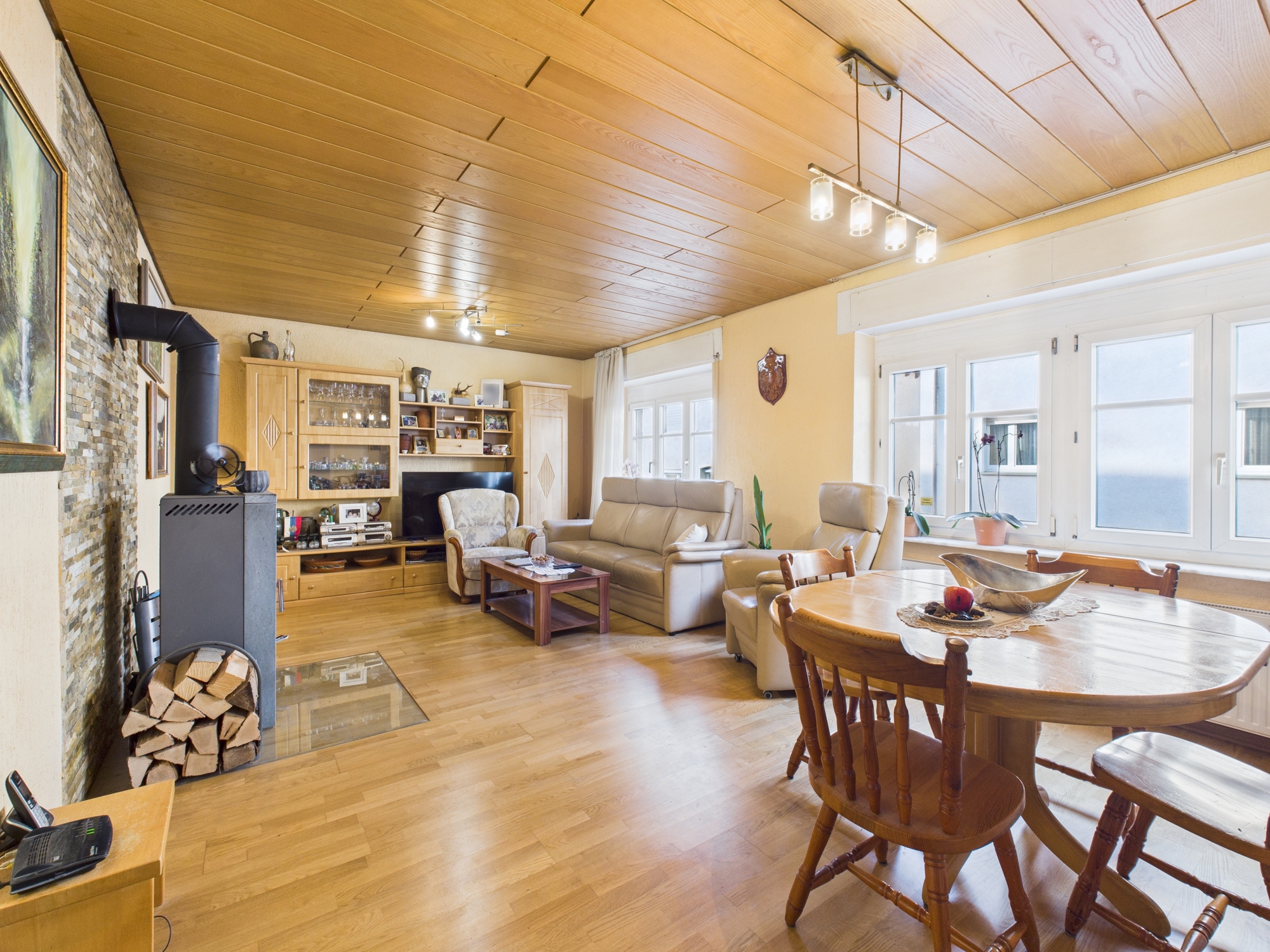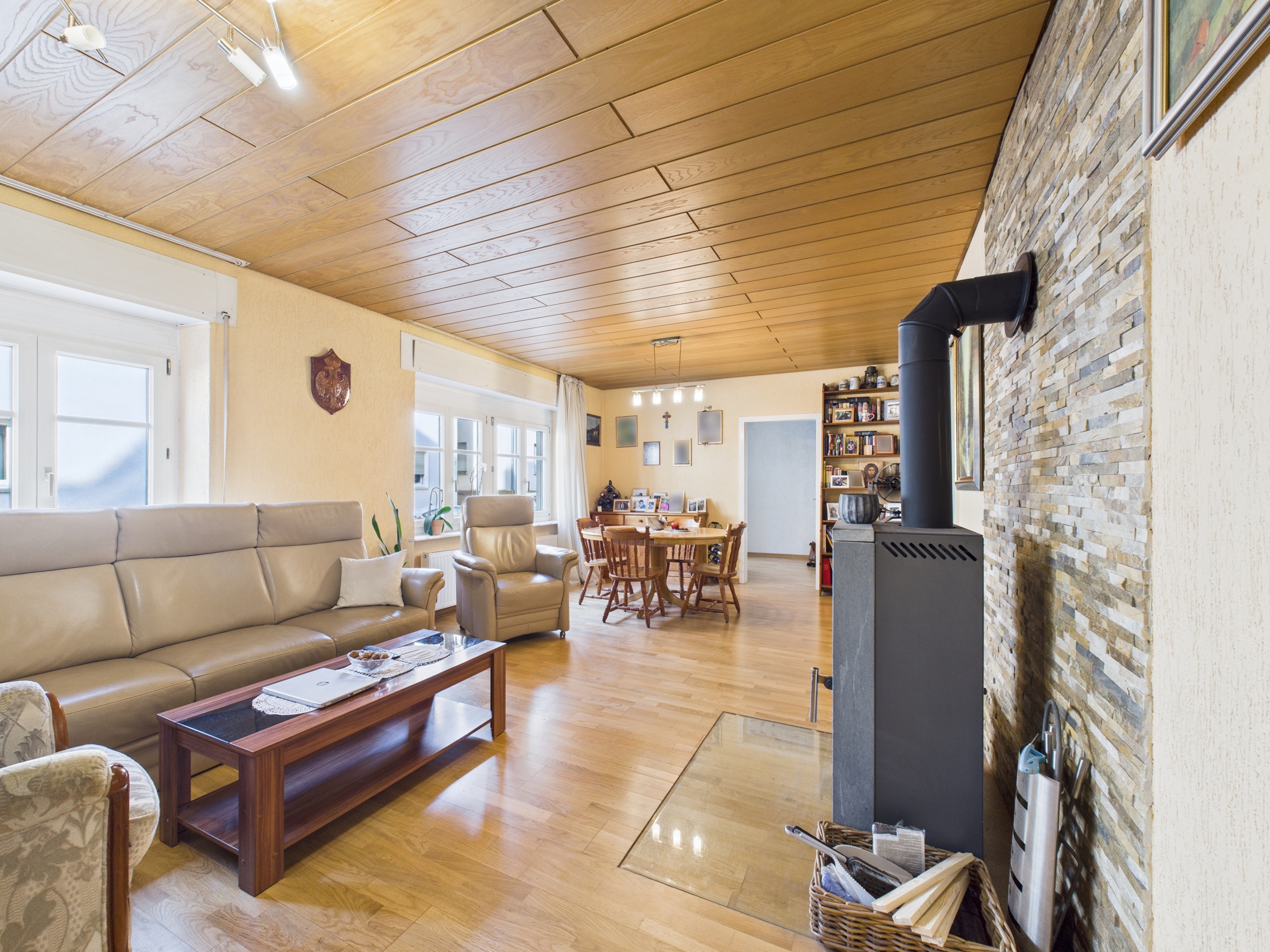 Diese Erdgeschosswohnung bietet ein seltenes Plus: zusätzlich verfügt sie über ein Gästezimmer mit Bad und Küche im UG. Die Erdgeschosswohnung überzeugt durch einen hellen Wohn- und Essbereich mit Kaminofen. Sie verfügt über eine Küche sowie über Schlafzimmer, Kinderzimmer und Homeoffice. Eine Garage ergänzt das Angebot sinnvoll. Das Gästezimmer im UG eignet sich auch hervorragend zur Vermietung.