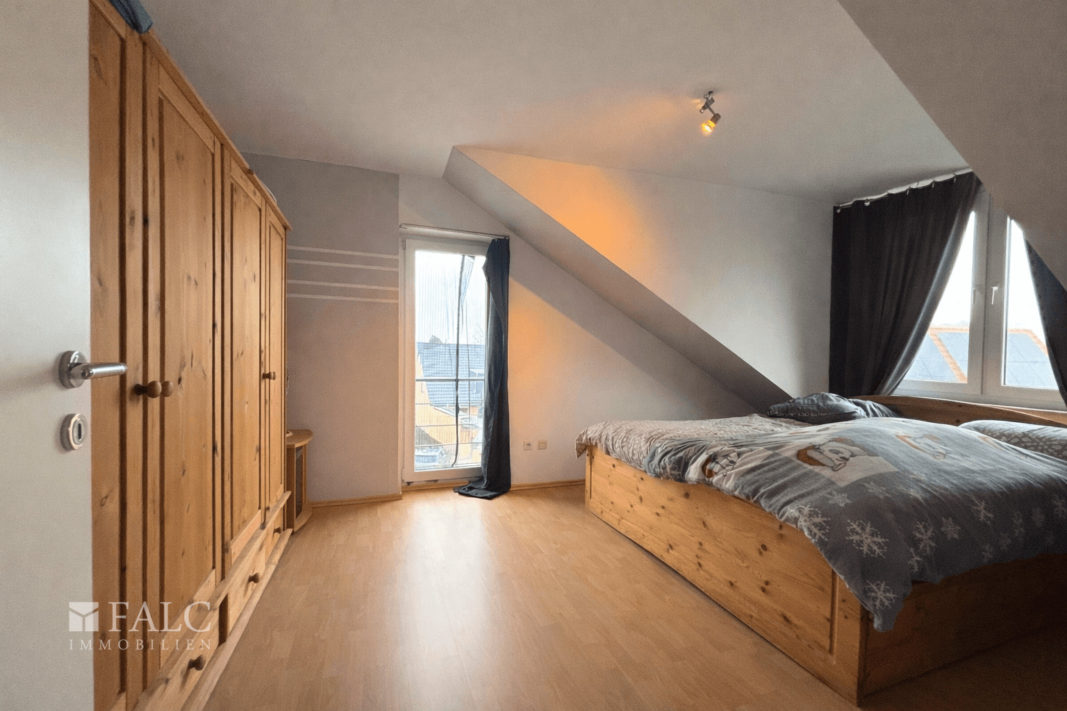 Auf der gegenüberliegenden Seite befinden sich zwei weitere Zimmer. Das Elternschlafzimmer ist ruhig gelegen und bietet gute Stellflächen für Bett und Kleiderschrank. Das zweite Zimmer ist als Kinderzimmer ausgewiesen und eignet sich ebenso als Arbeits- oder Gästezimmer.