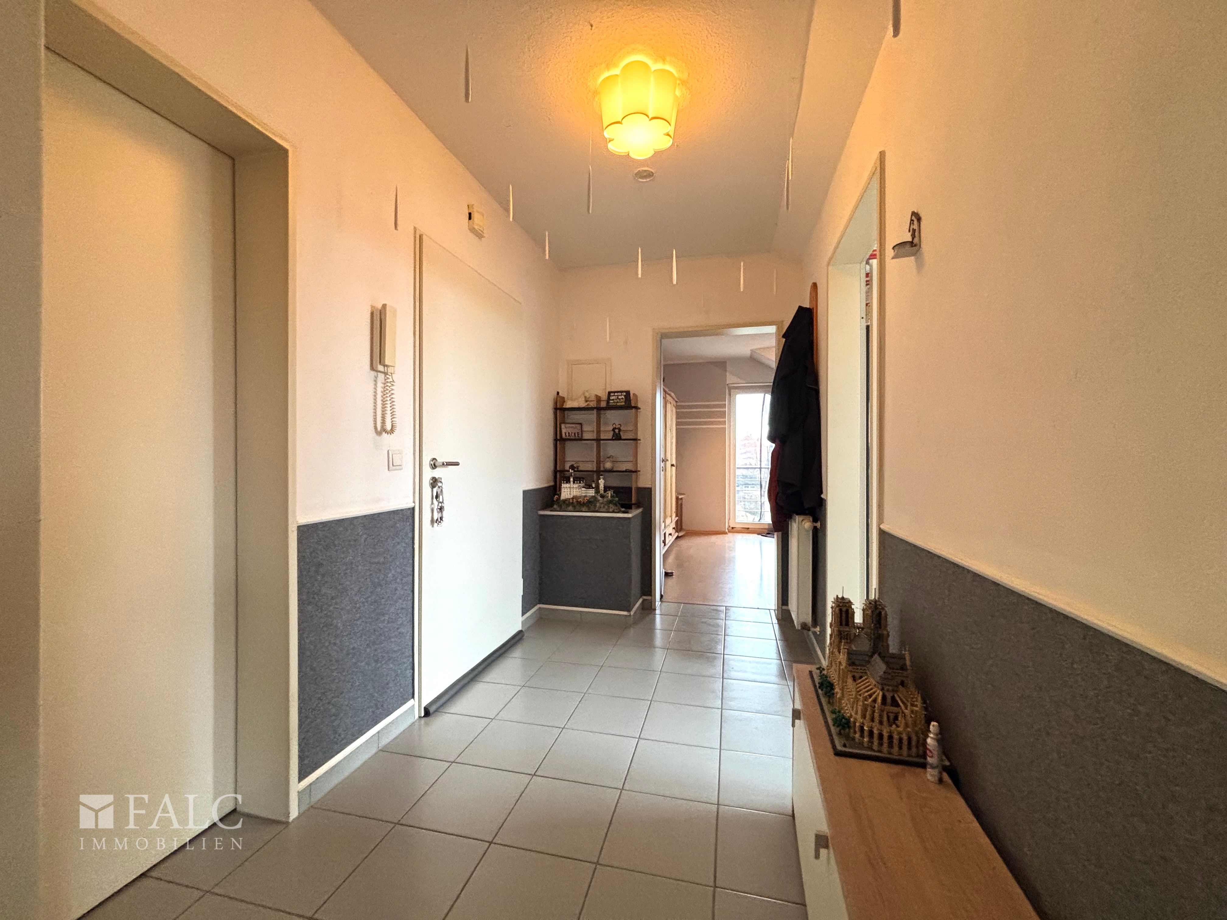 Aus dem Eingangsbereich gelangen Sie nahtlos in den Flur. Von hier aus sind alle Räume direkt erreichbar, was den Alltag praktisch macht und Laufwege kurz hält.