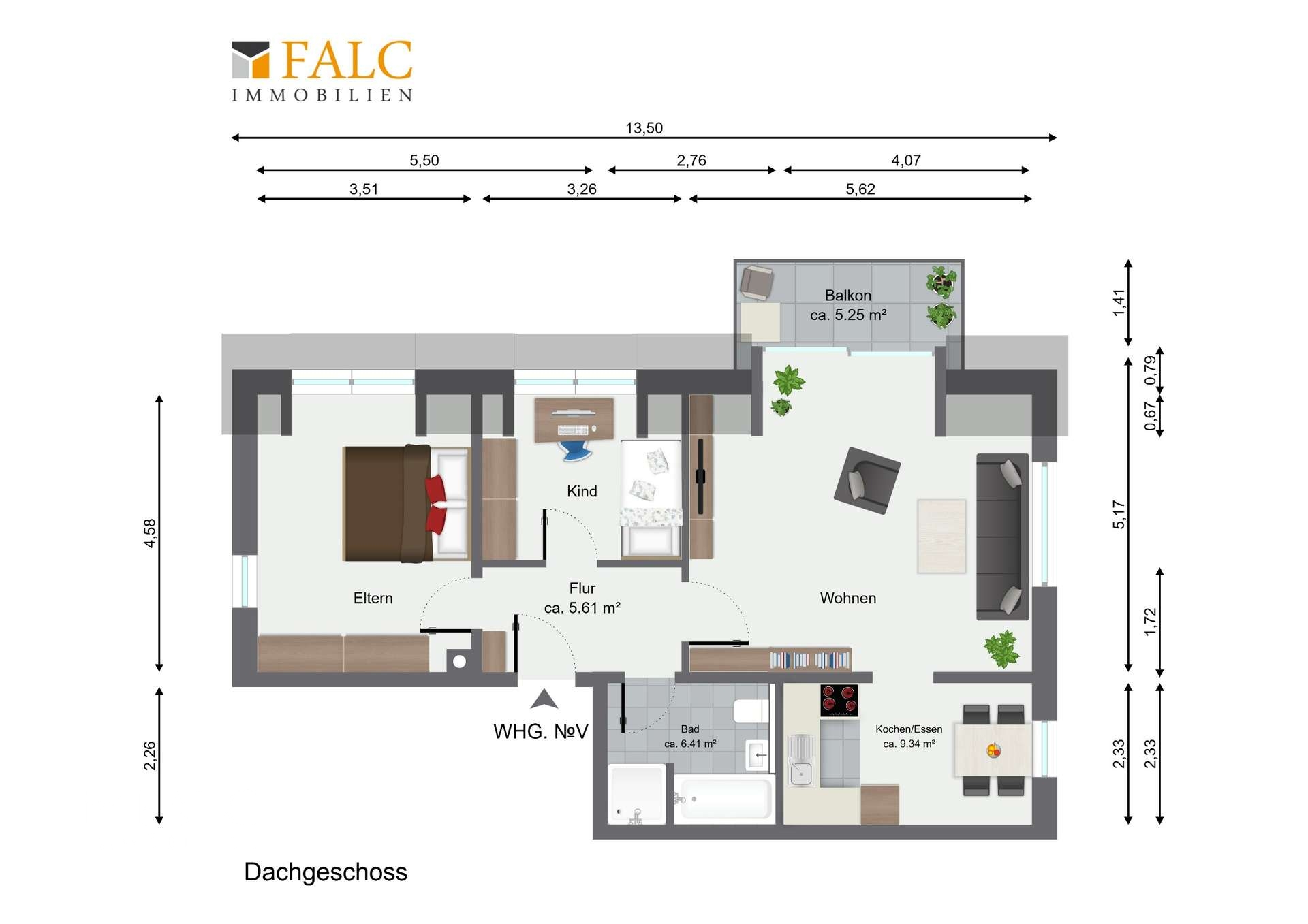 Rechts öffnet sich der Wohnbereich. Das Wohnzimmer ist großzügig geschnitten und wirkt durch die Fensterfronten angenehm hell. Der anliegende Balkon mit ca. 5,25 m², bietet Platz für einen kleinen Tisch und Sitzgelegenheiten und lädt für entspannte Abendstunden im Freien ein.
