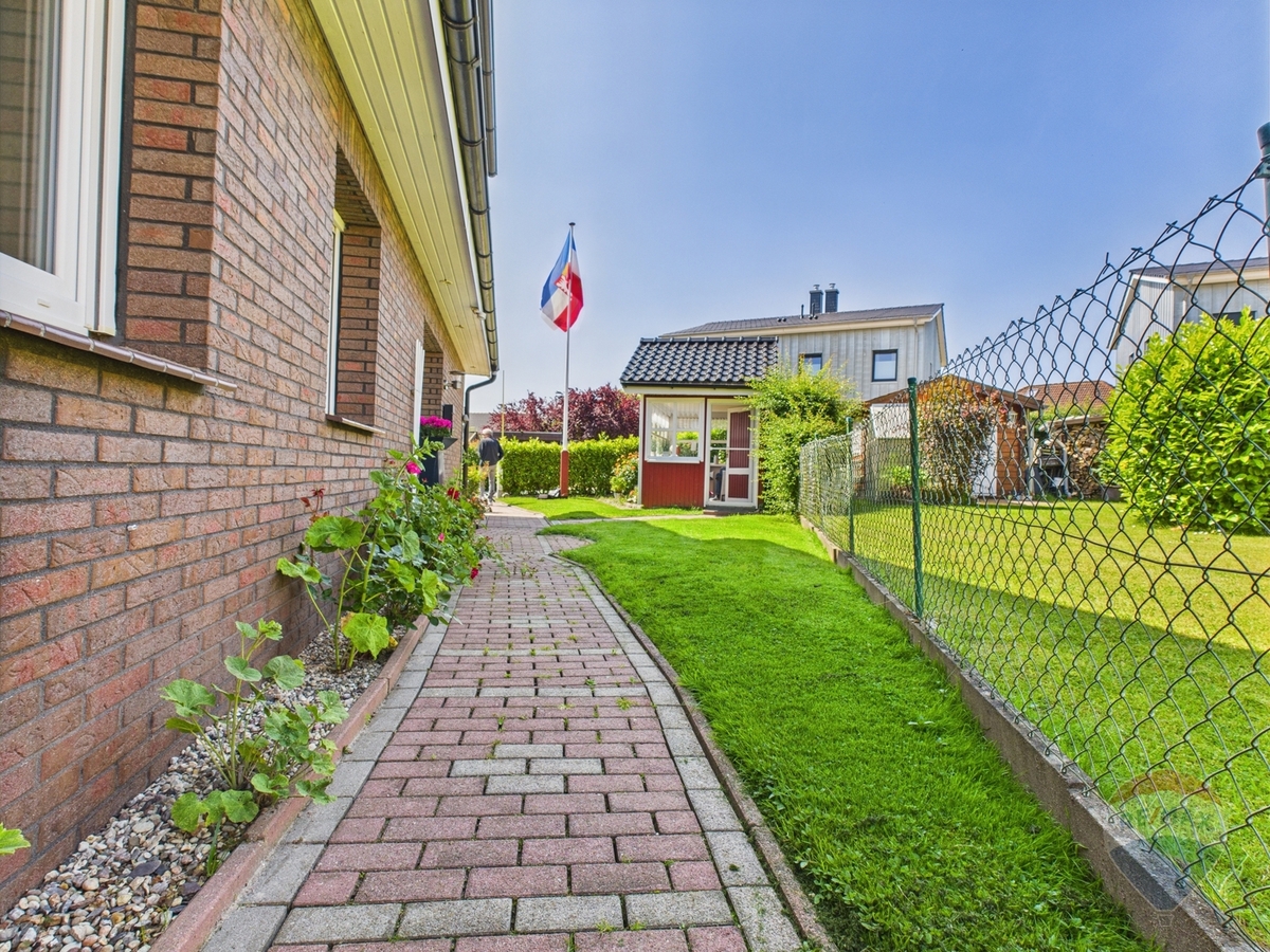 Das Haus liegt ruhig am Ende eines Privatwegs und dennoch nahe zur Ostsee und Promenade von Haffkrug – ideal für alle, die Wohnen und Urlaub verbinden möchten.