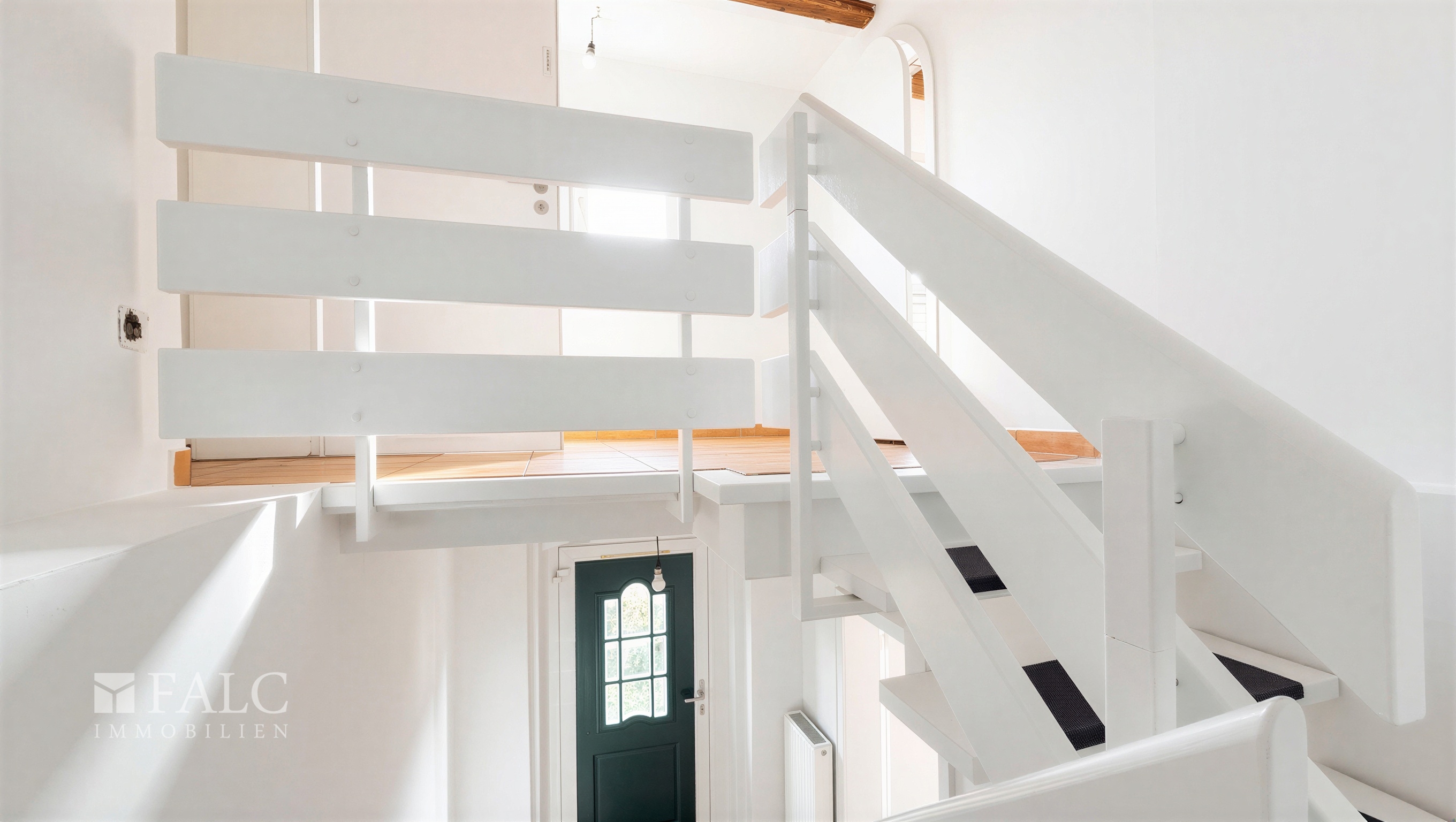 Bernd Zinn von FALC Immobilien Overath präsentiert Ihnen eine außergewöhnlich großzügige Eigentumswohnung mit rund 171 m² Wohnfläche und 296 m² Gesamtfläche, verteilt auf drei Etagen – ein echtes Unikat mit Hauscharakter und traumhaftem Blick ins Grüne.