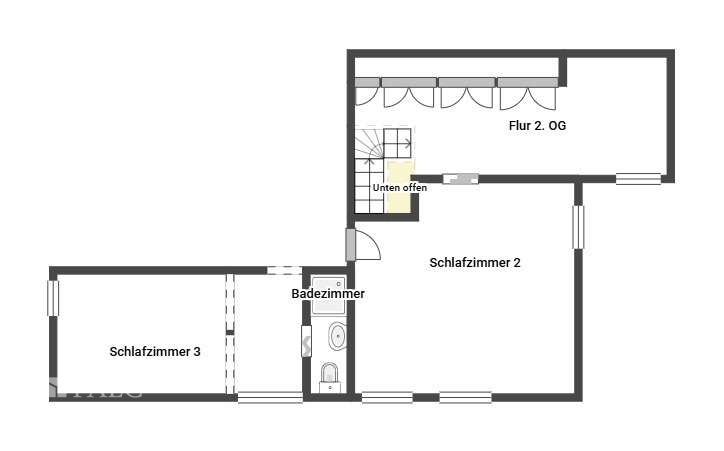 Das 2. Obergeschoss besticht durch eine großzügige Diele mit einem praktischen, großen Einbauschrank, der wertvollen Stauraum bietet. Zwei weitere, lichtdurchflutete Zimmer eröffnen vielfältige Nutzungsmöglichkeiten – ob als Schlafzimmer, Kinderzimmer oder Homeoffice, hier findet jedes Familienmitglied seinen persönlichen Rückzugsort. Ein weiteres Badezimmer mit Duschkabine sorgt auf dieser Ebene für zusätzlichen Komfort und kurze Wege. Dank des durchdachten Grundrisses lässt sich das gesamte 2. Obergeschoss auch hervorragend als eigenständiger Kinderbereich gestalten – mit separatem Bad, gemütlichen Rückzugsräumen und ausreichend Platz zum Spielen und Entfalten. So entsteht ein ideales Reich für die jüngeren Familienmitglieder, das Geborgenheit und Freiraum zugleich bietet.