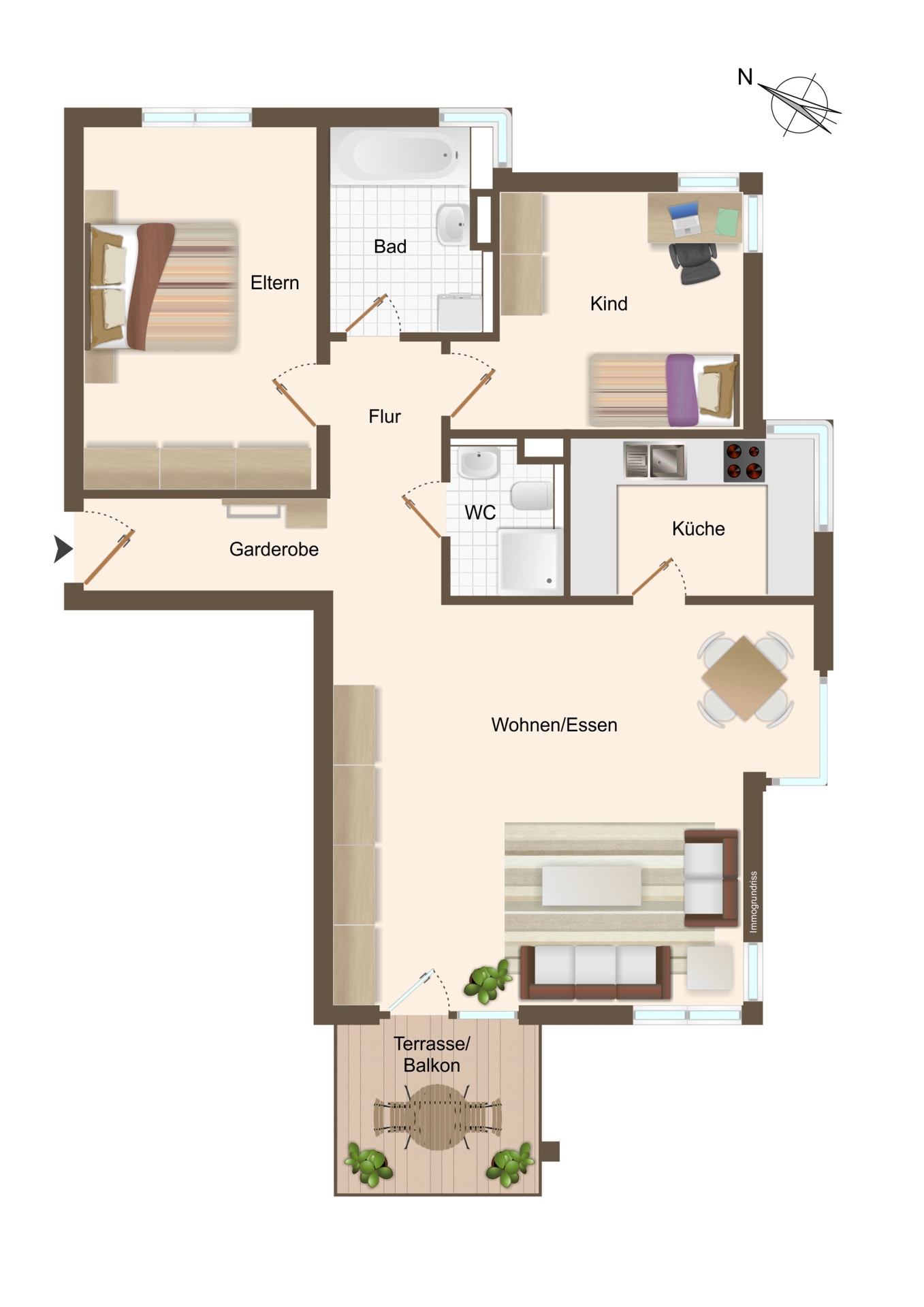 Diese attraktive 3-Zimmer-Erdgeschosswohnung überzeugt durch ihren durchdachten Grundriss, eine hochwertige Ausstattung sowie einen großzügigen Außenbereich. Der lichtdurchflutete Wohn- und Essbereich mit knapp 30 m² bildet das Herzstück der Wohnung und bietet viel Raum für Wohnen, Essen und Entspannen.