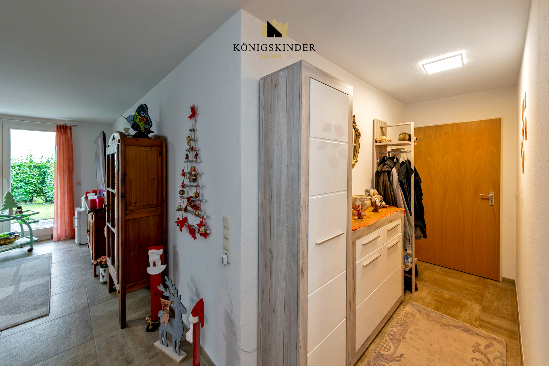 Von hier aus gelangen Sie auf die weitläufige Terrasse mit Wasseranschluss, die gemeinsam mit dem schönen Gartenanteil zum Verweilen im Freien einlädt. Ein Gartenhaus, das im Rahmen eines Sondernutzungsrechts zur Wohnung gehört, bietet zusätzlichen Stauraum oder Platz für Hobby und Freizeit.