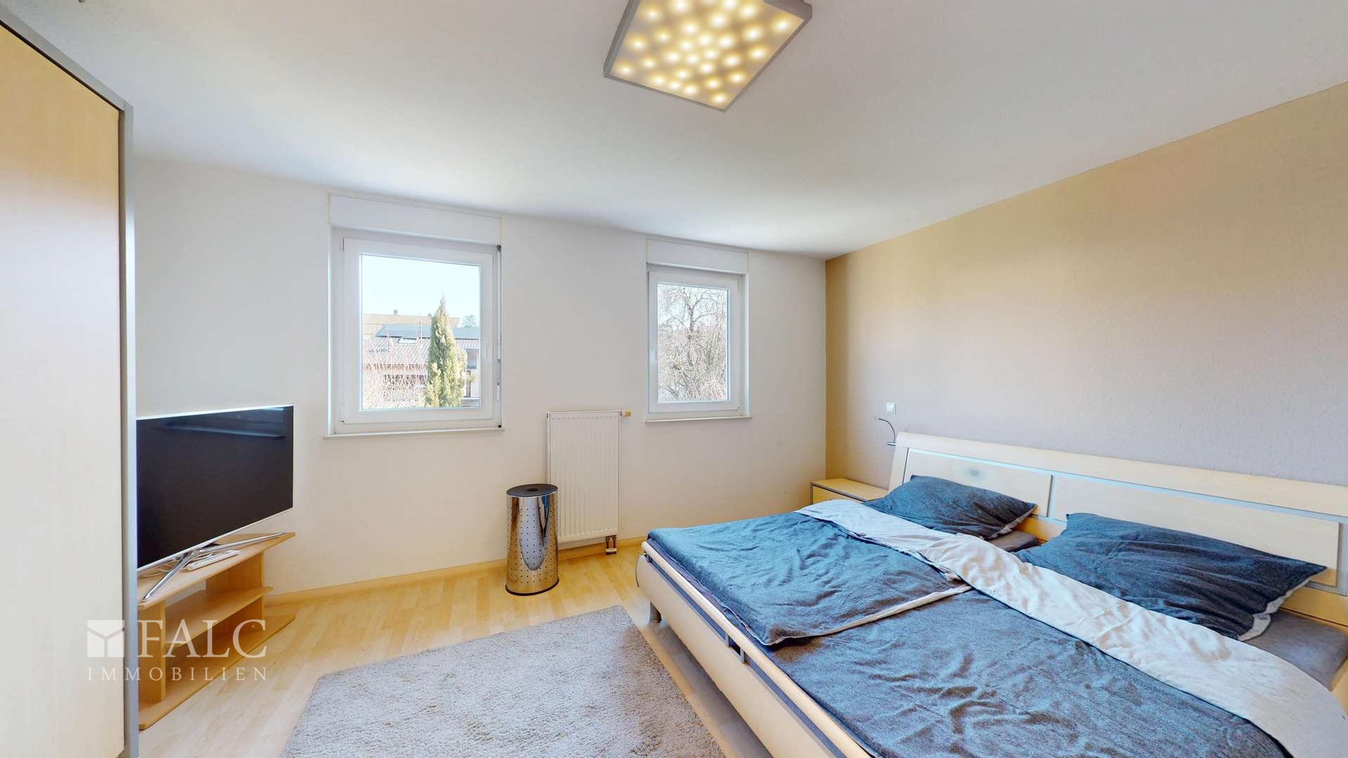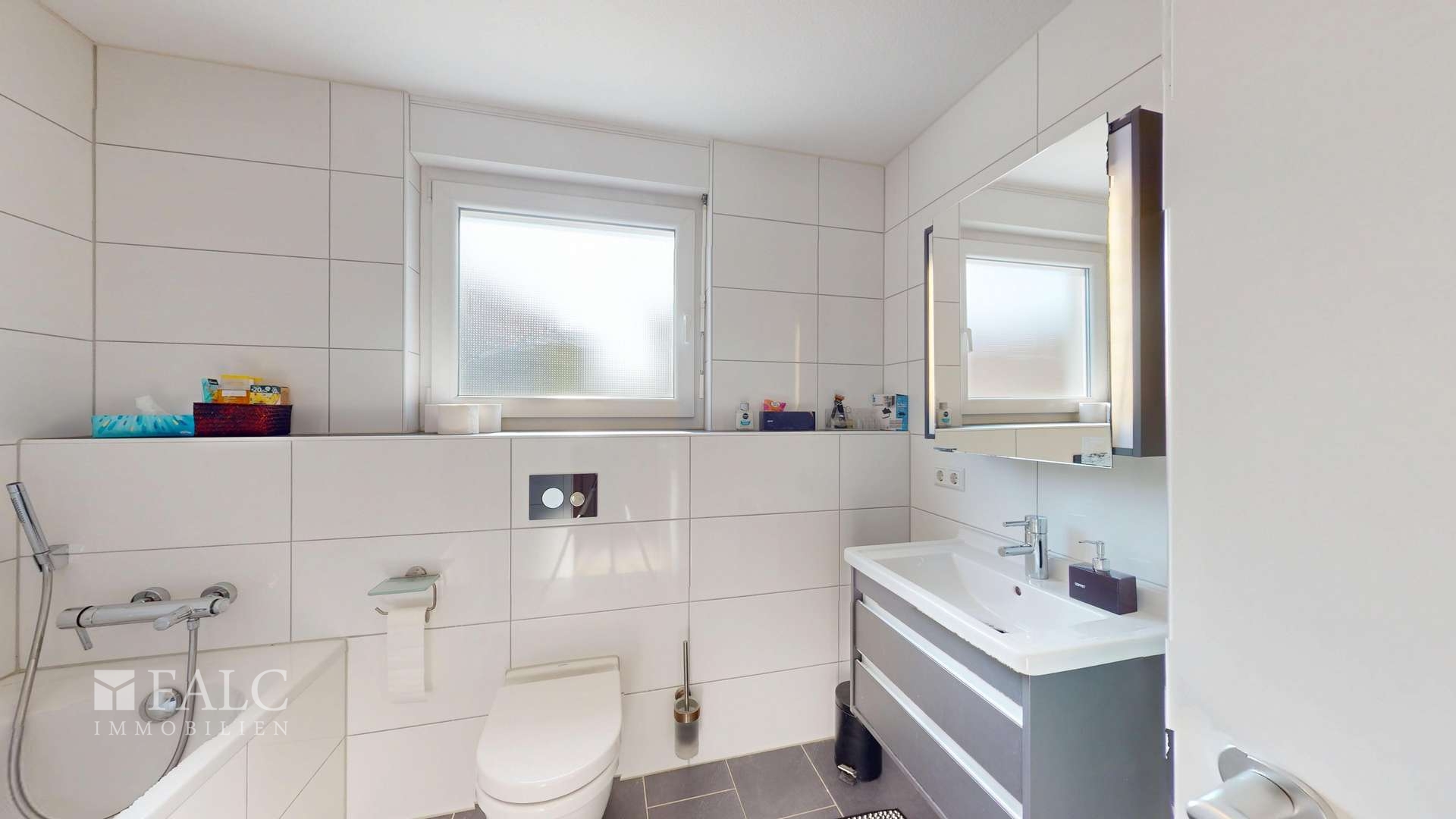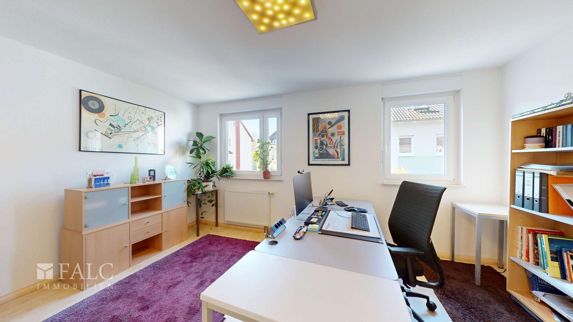 Im ersten Obergeschoss befinden sich ein Schlafzimmer, ein Kinderzimmer sowie ein Bad mit Badewanne und Dusche. Im Dachgeschoss stehen ein weiteres Kinderzimmer und ein Büro zur Verfügung, ergänzt durch einen Technikraum mit der Gastherme.